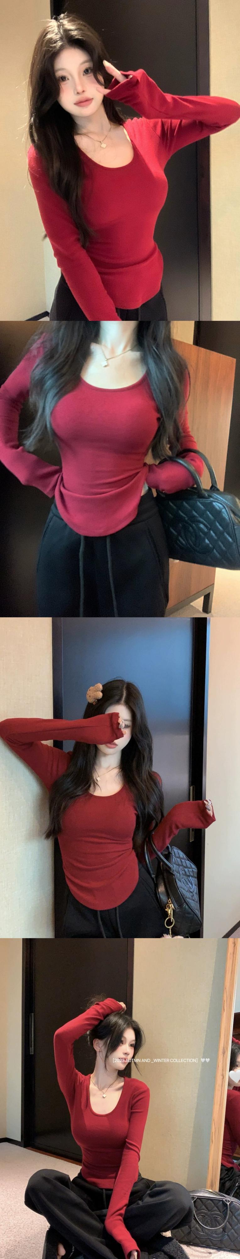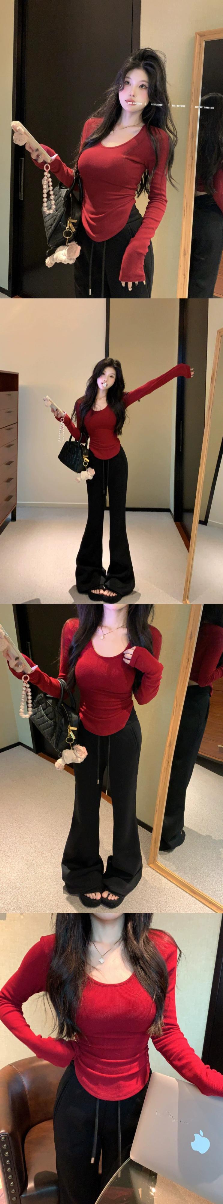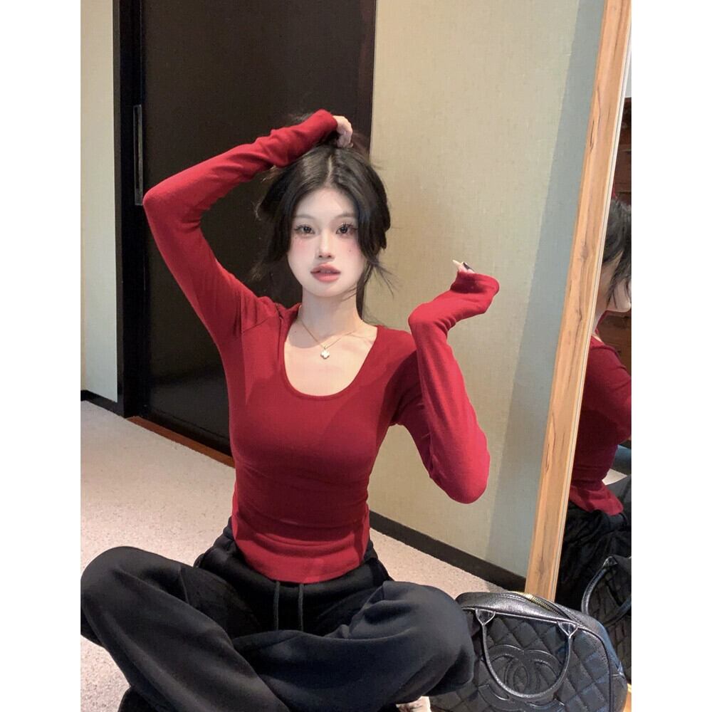 ホットボトムセーター女性の 2024 春と秋の新しい純粋な欲望赤不規則なスリムフィット長袖トップ ロング レッド スプリング 春物 オータム 秋物 ピュア missk87636246972