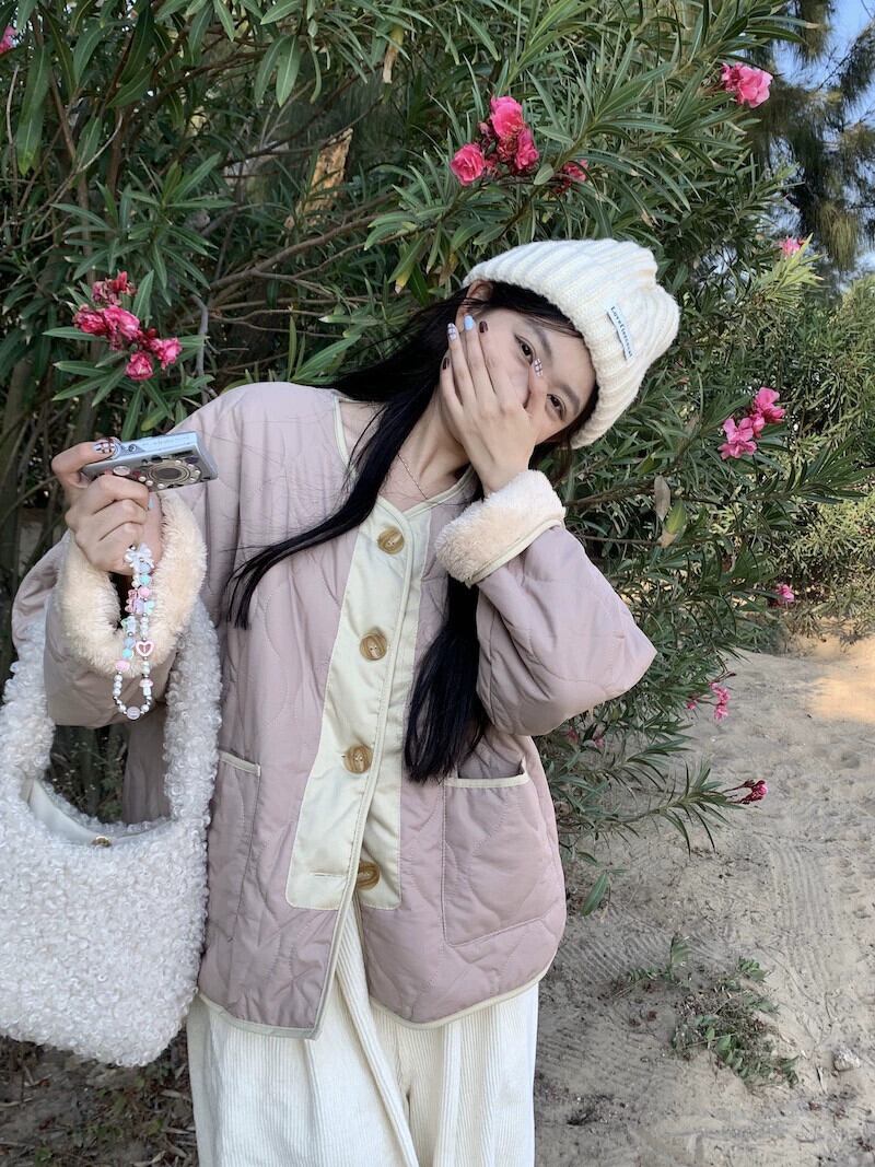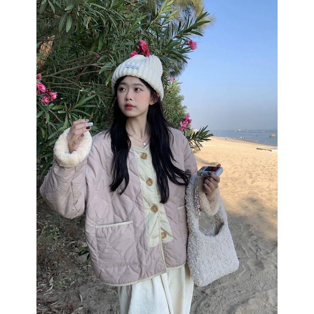 ベルベット肥厚コットンコート女性の春 2024 新しいカレッジスタイルピンクデザイン緩い暖かいコットンコート スプリング 春物 missk34478899323