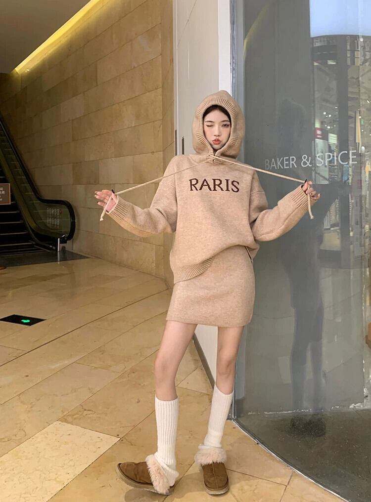 フード付き厚みのあるセータージャケットの女性、春と秋のスタイル、高級スカート、2点セット、ファッショナブルな怠惰なスタイルのニットスーツ スプリング 春物 オータム 秋物 missk85154733035