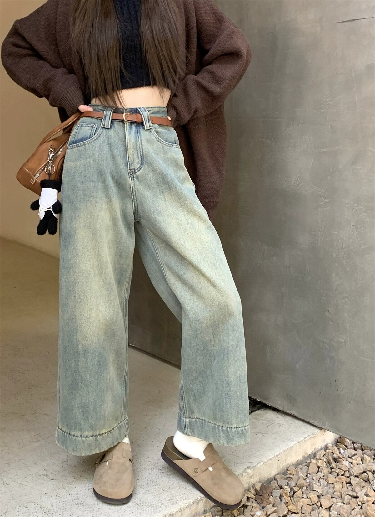 ベルベット肥厚ジーンズ女性春と秋 2024 新しいレトロハイウエストスリムライトブルーストレートワイドレッグロングパンツ スプリング 春物 オータム 秋物 missk71785643530
