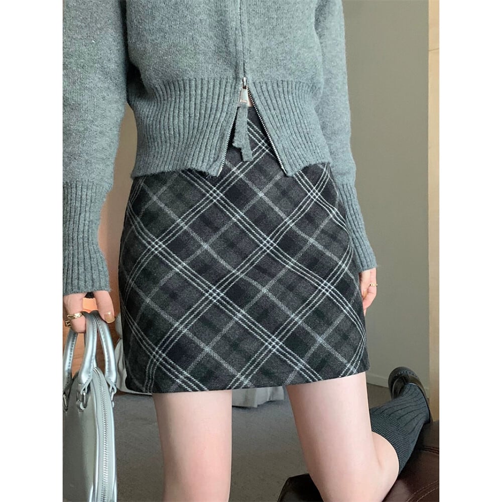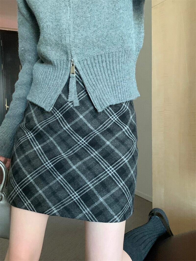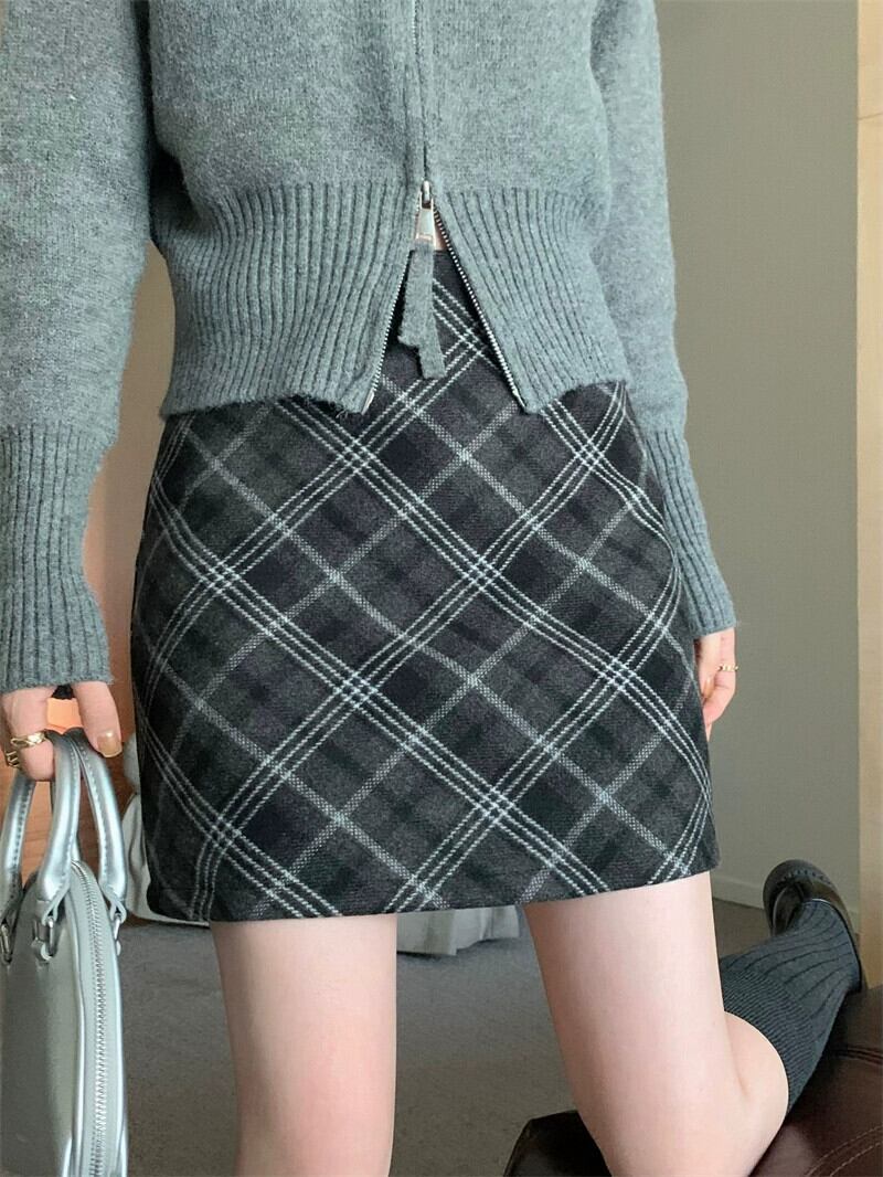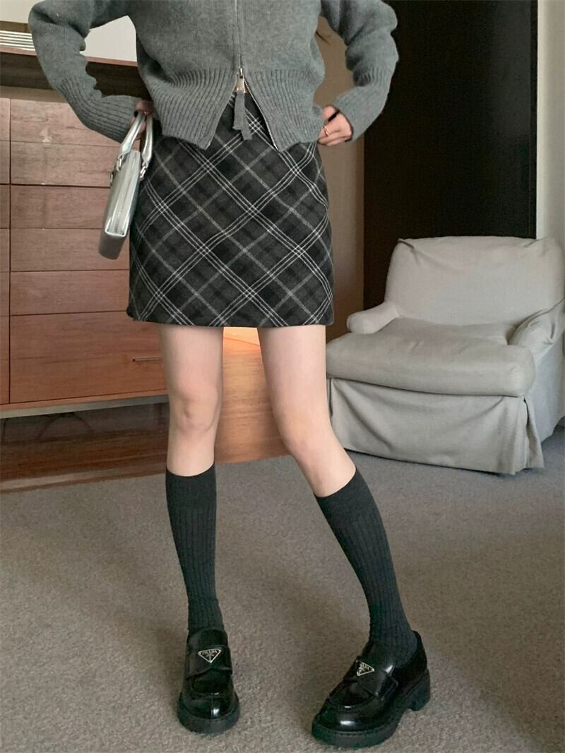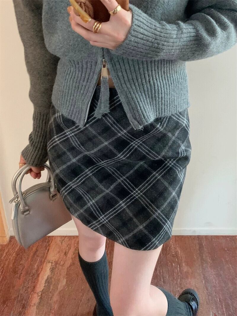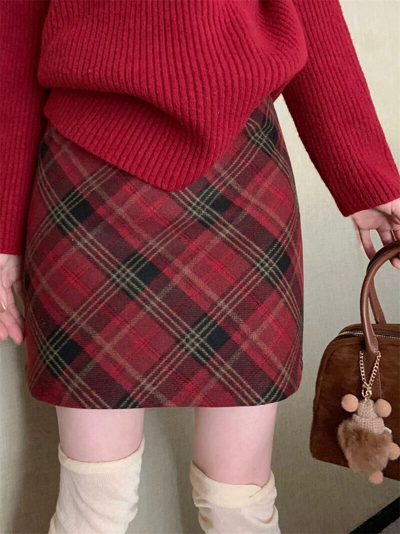 春と秋のレトロな赤い格子縞のウールのスカートの女性、薄いハイウエストの A ライン スカート、フランスの格子縞のショート スカート レッド スプリング 春物 オータム 秋物 Aライン missk1544584992