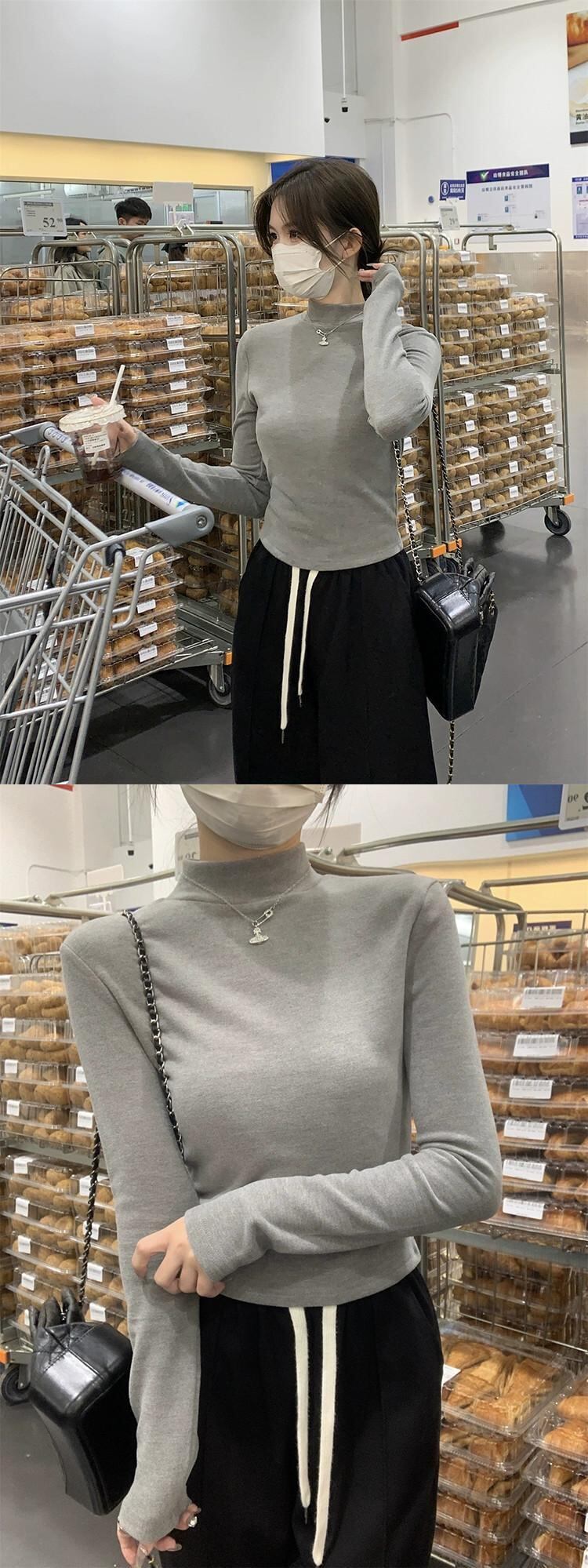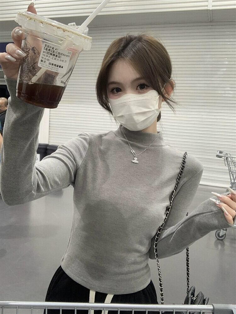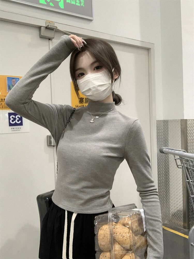 ドイツベルベットハーフハイカラーインナー底シャツ女性春と秋 2024 新しい純粋な欲望スタイルトップスリム白長袖 Tシャツ ロング ホワイト スプリング 春物 オータム 秋物 ピュア missk42968095870