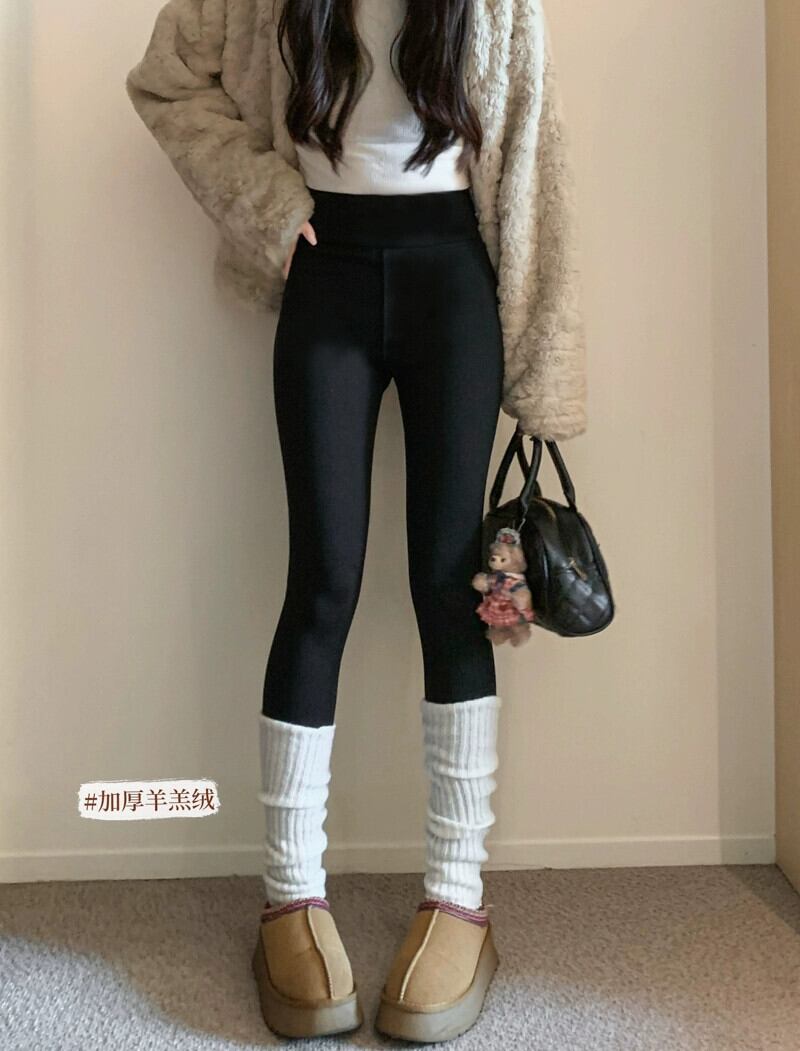 アウターとして着用できるベルベットと厚みのあるシャークパンツ、春と秋の暖かいコットンパンツ、スリムで伸縮性のある黒のハイウエストレギンス ブラック スプリング 春物 オータム 秋物 missk69719201118