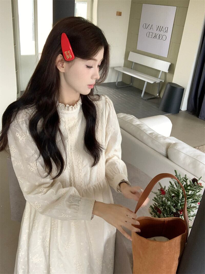 肥厚ベルベットドレス女性春と秋 2024 新しいフレンチレースウエスト痩身ミッドレングスボトスカート スプリング 春物 オータム 秋物 missk2930388139