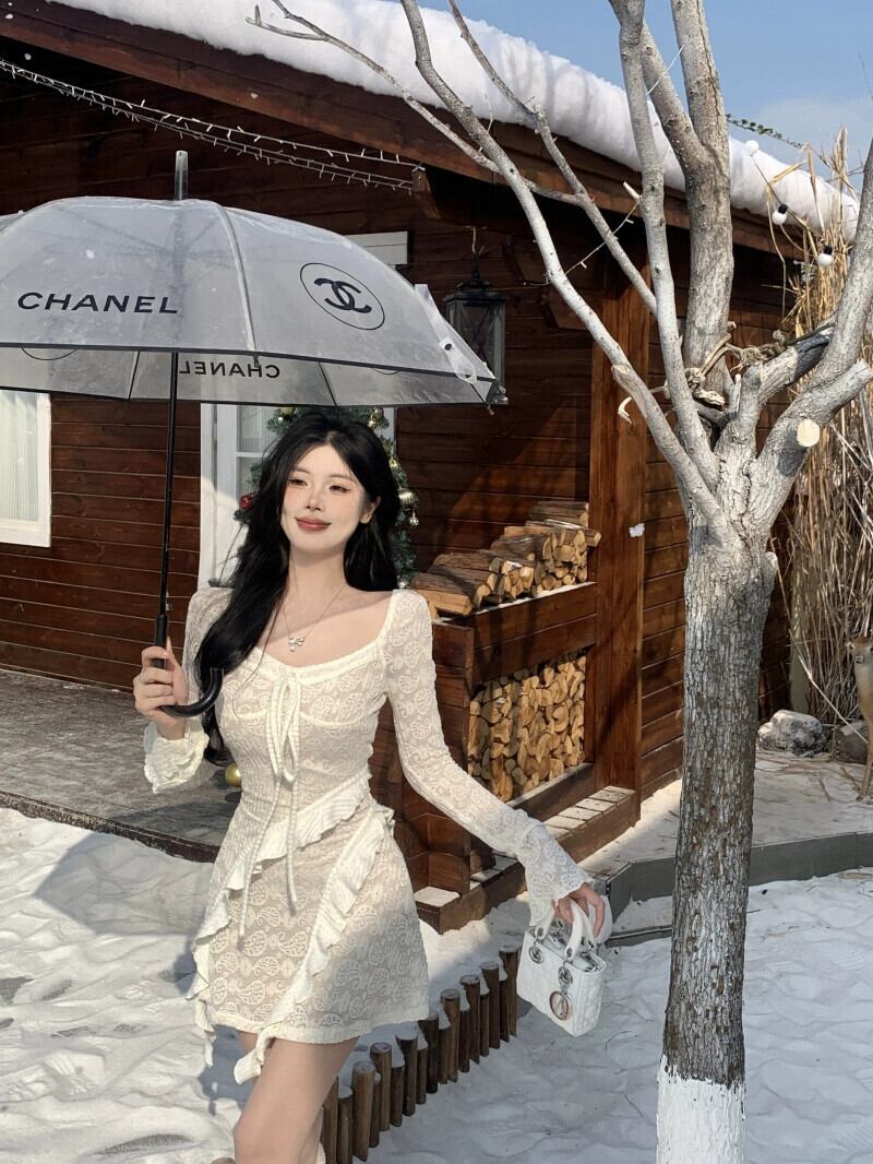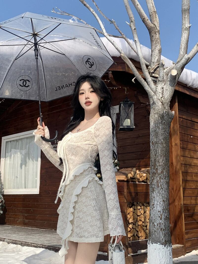 純粋な欲望レース巾着ドレス女性春 2024 新しい気質ニッチデザインインナーショートスカート スプリング 春物 missk48343239624