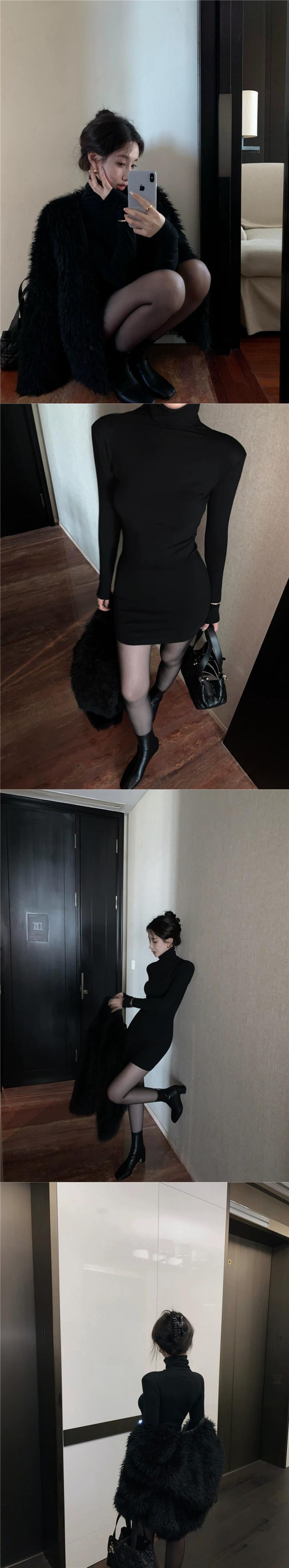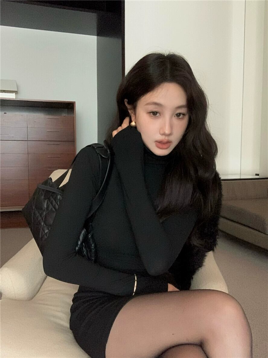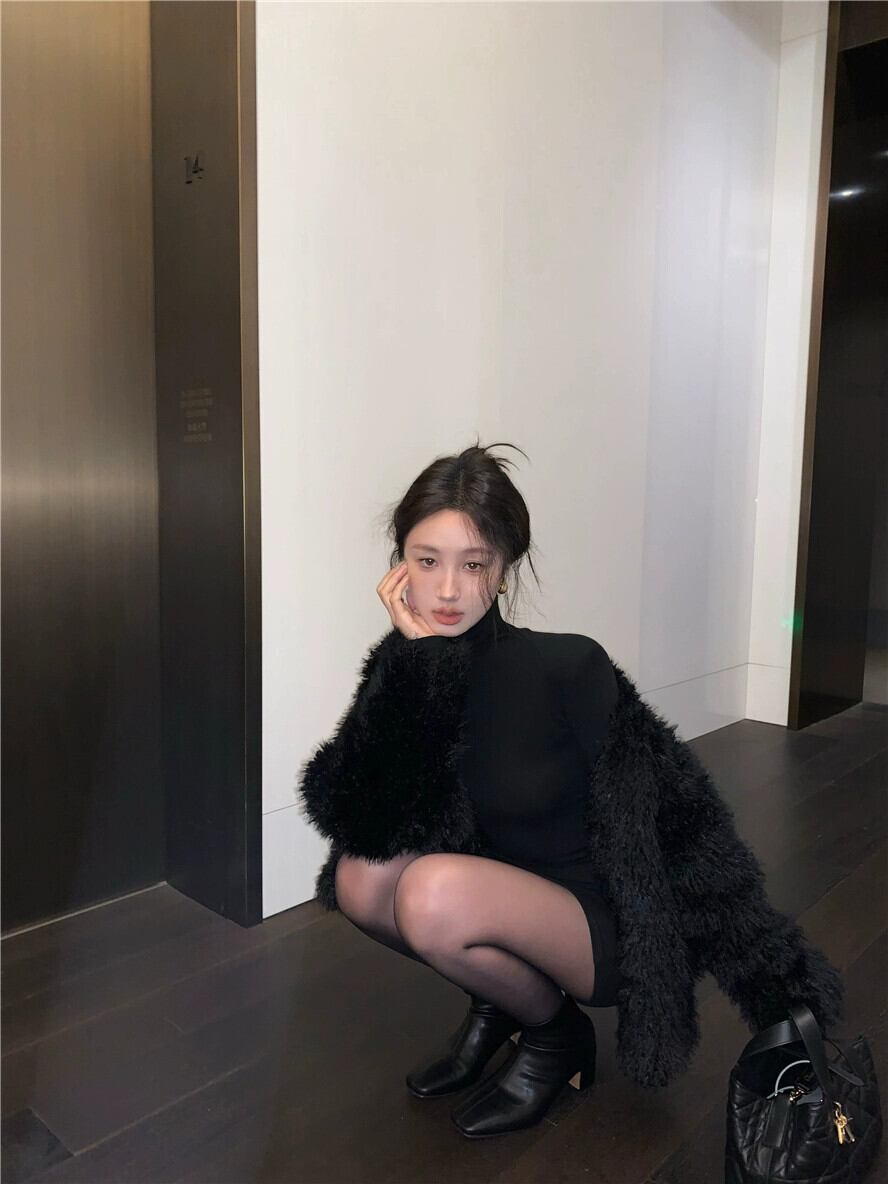 フレンチブラックタートルネックドレス女性春と秋2024新しいハイエンドウエストバッグヒップショートスカートとインナーベーススカート スプリング 春物 オータム 秋物 missk68980584587