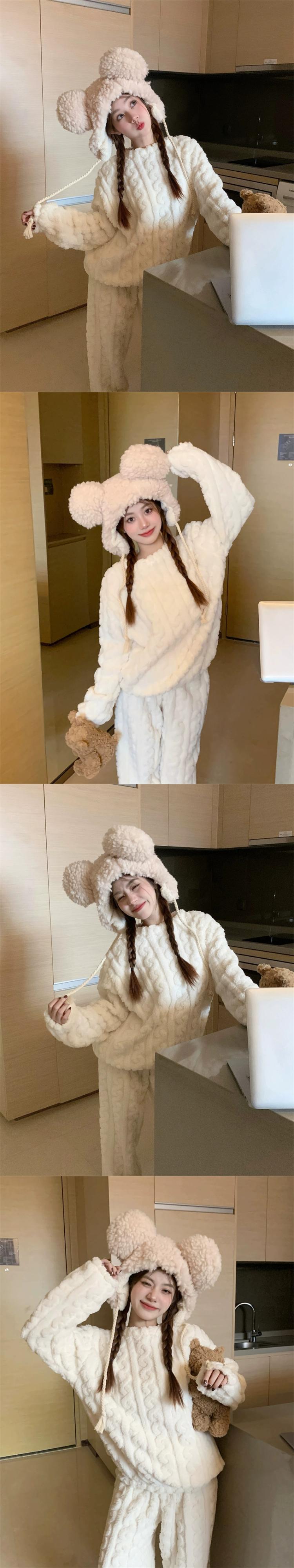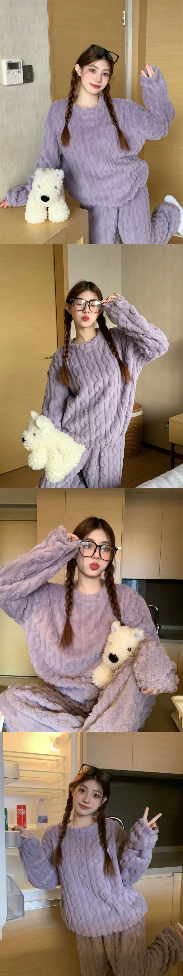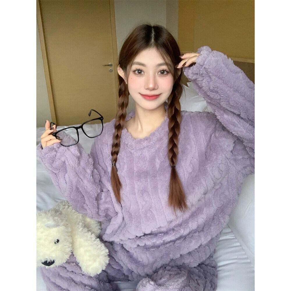 甘い厚みのあるコーラルベルベットのパジャマ女性、春と秋のウェアラブルホーム服セット、暖かい豪華なパジャマ 2 点セット 大人ガーリー スウィート キュート カジュアル スプリング 春物 オータム 秋物 missk57275019757