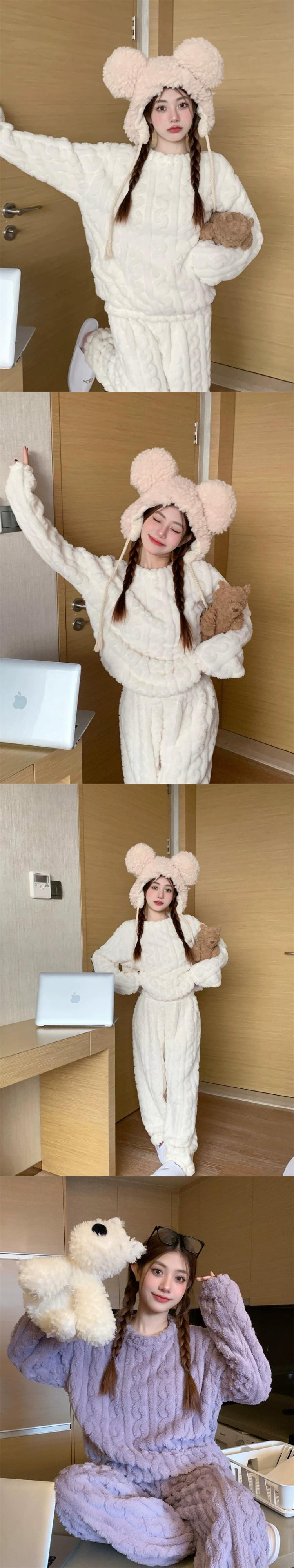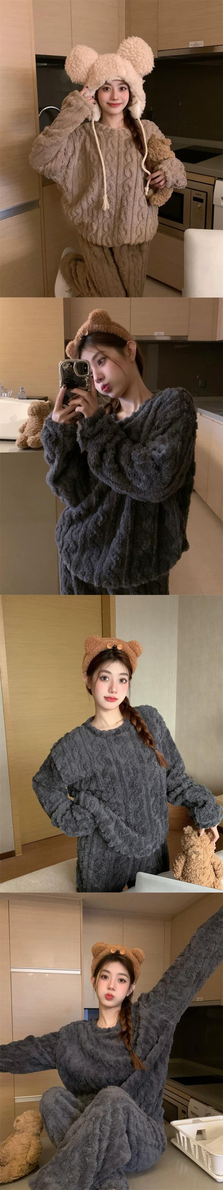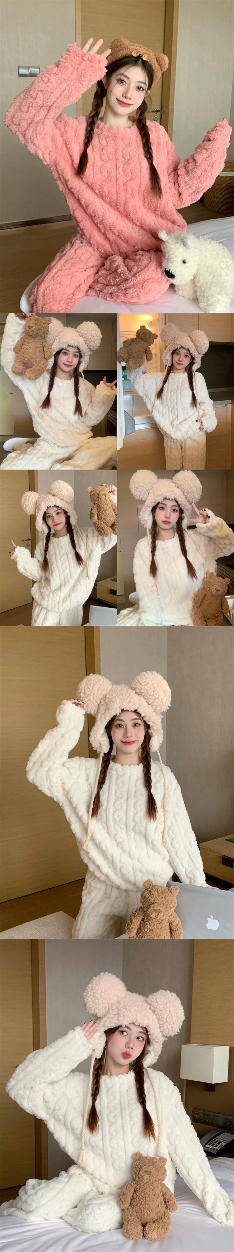 甘い厚みのあるコーラルベルベットのパジャマ女性、春と秋のウェアラブルホーム服セット、暖かい豪華なパジャマ 2 点セット 大人ガーリー スウィート キュート カジュアル スプリング 春物 オータム 秋物 missk57275019757