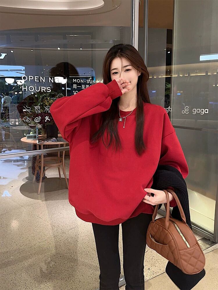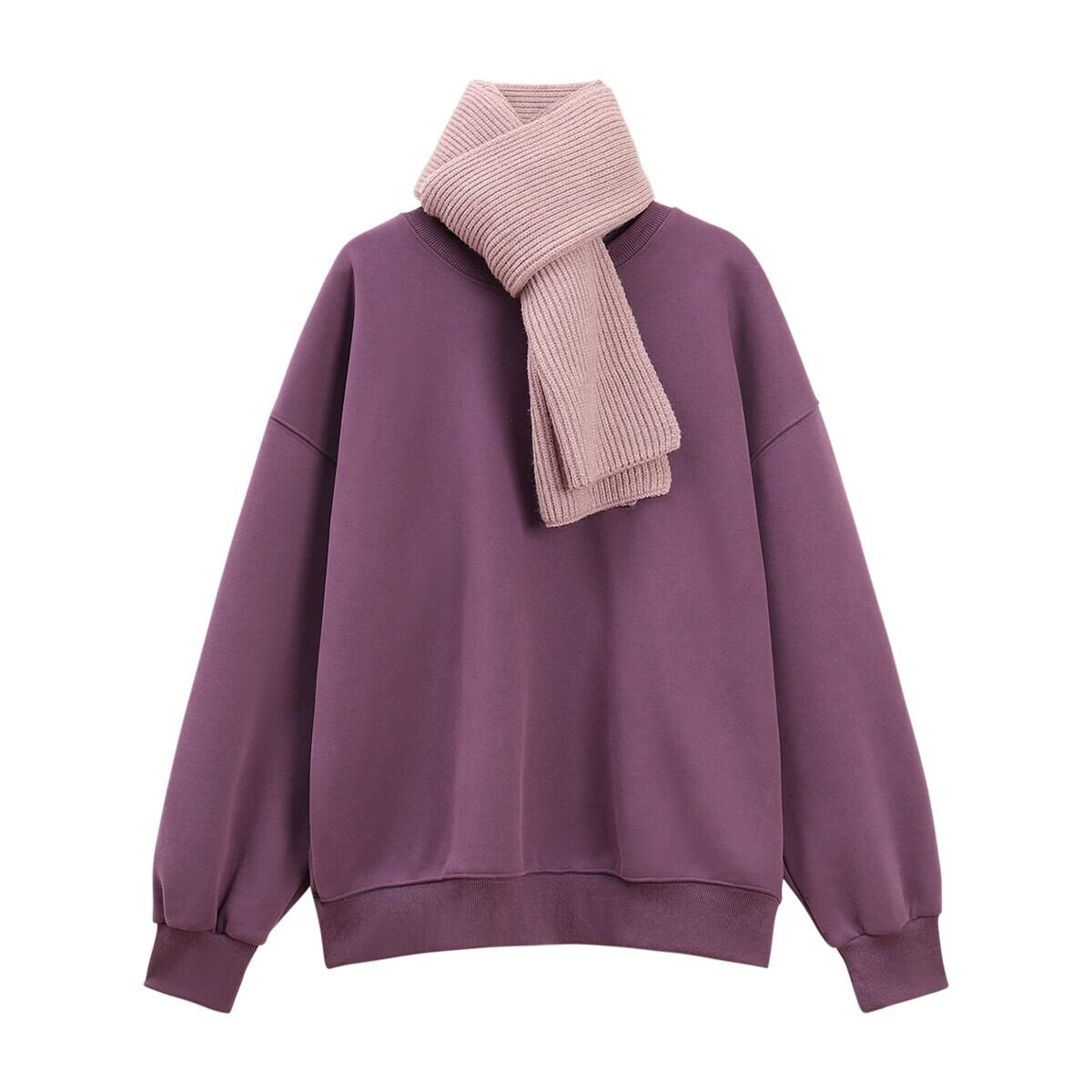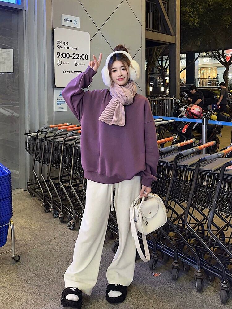 ベルベット肥厚紫色のスウェットシャツの女性の春と秋 2024 新しいアメリカンスタイル怠惰なルーズラウンドネックプルオーバートップ小人 スプリング 春物 オータム 秋物 Oネック パープル missk45824679015