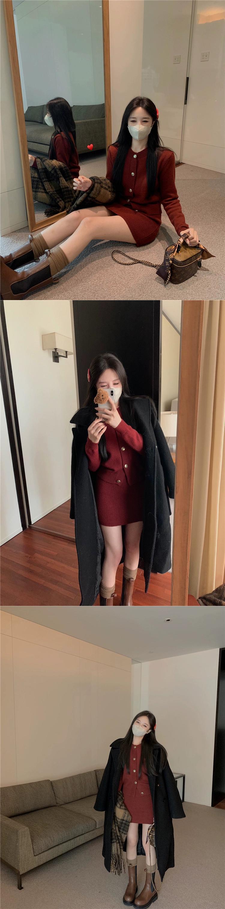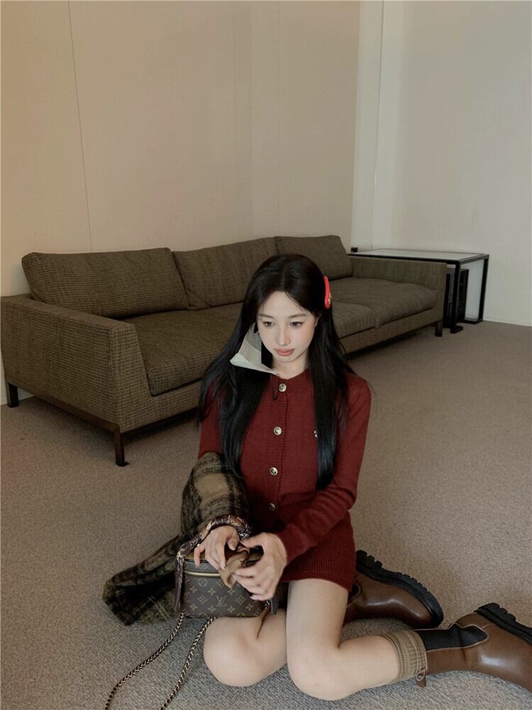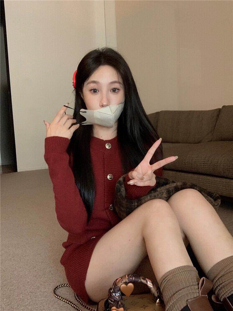 春と秋の小柄な女性のスーツの年赤いニットセーターヒップカバースカートとショートスカートの2点セット レッド スプリング 春物 オータム 秋物 missk3680551621