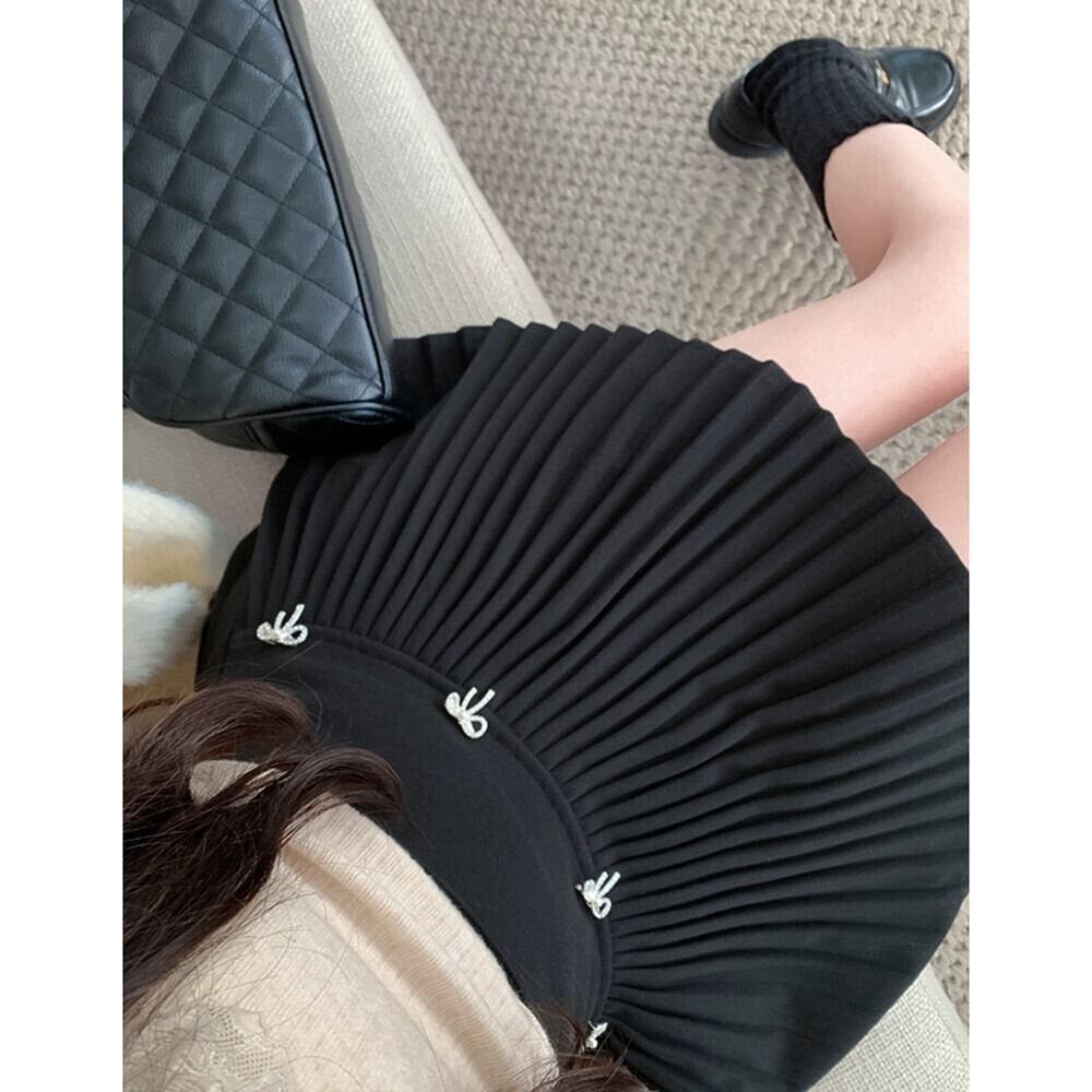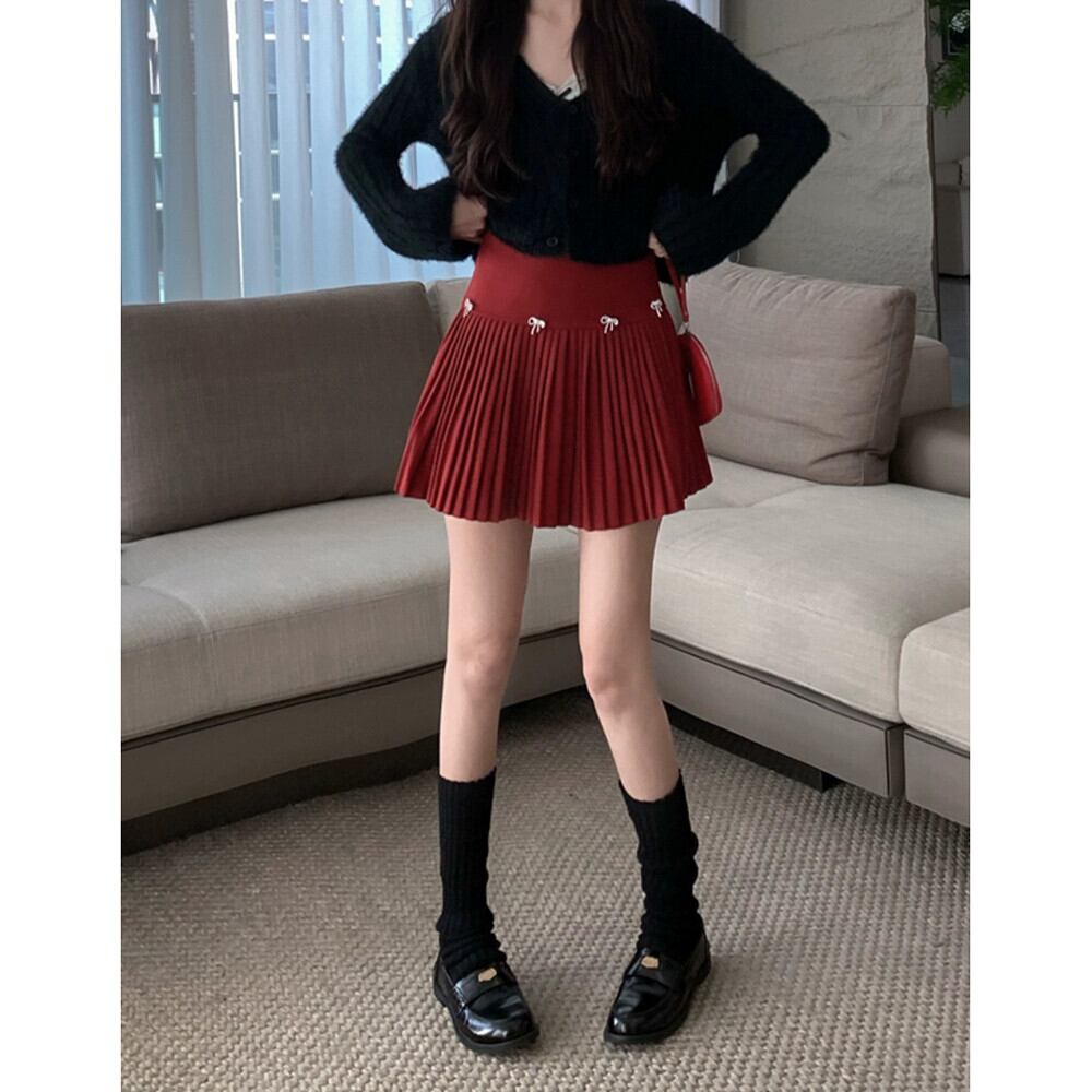 ウールのリボンプリーツスカート女性春と秋 2024 新しいスリムハイウエストスカート小さなスカート A ラインスカート スプリング 春物 オータム 秋物 Aライン missk66633001272
