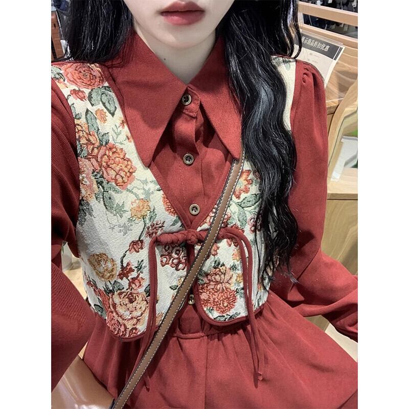 ED 偽ツーピースシックなドレスの女性の春 2024 新国民風新中国風の赤いミドル丈スカート レッド スプリング 春物 missk87124476102