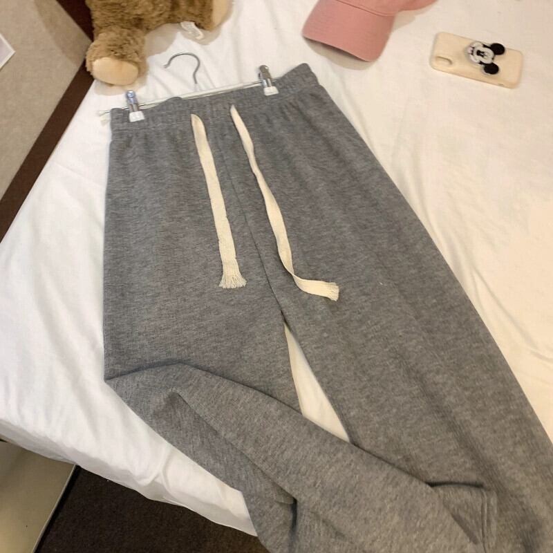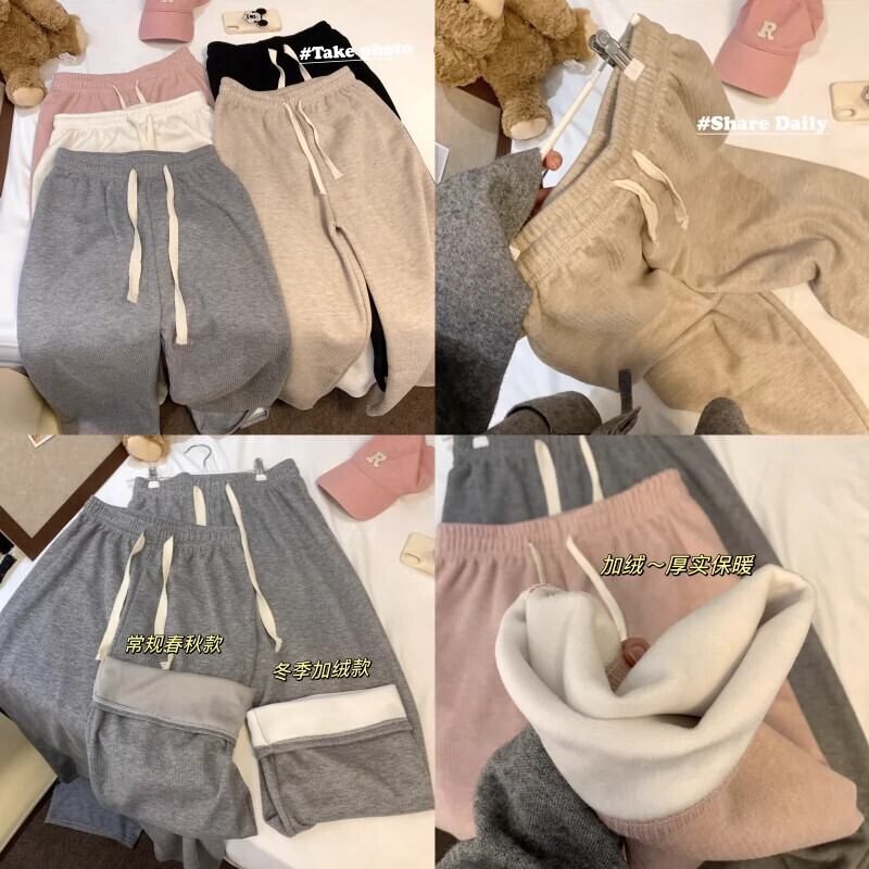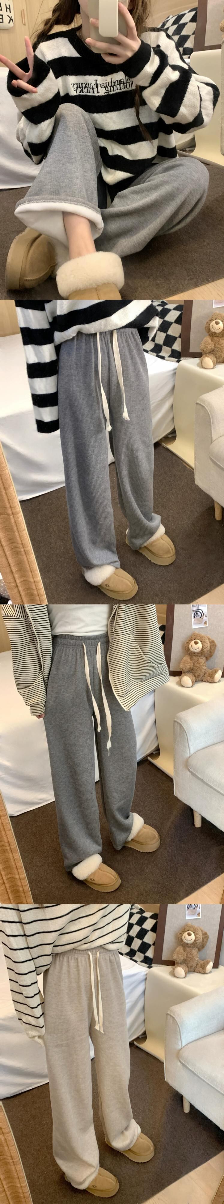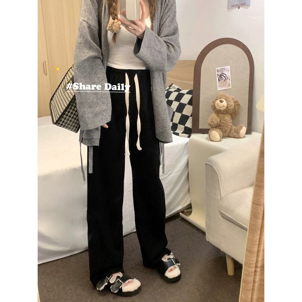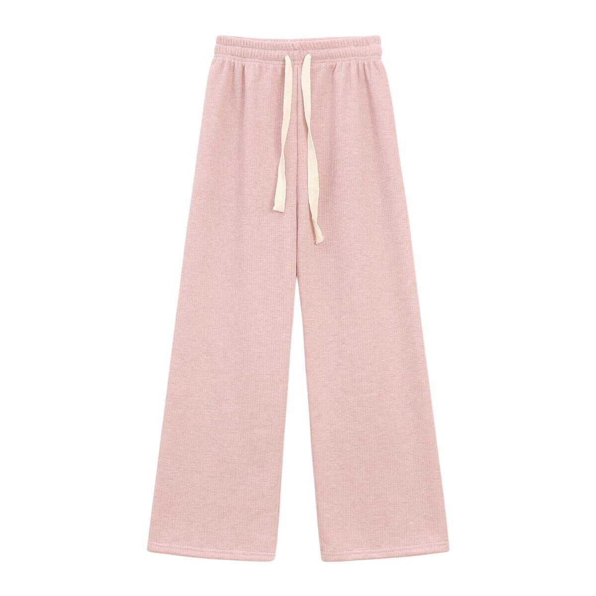 ピンクのベルベットの厚みのあるカジュアルパンツレディース、春と秋の伸縮性ウエストパンツ、ルーズストレートワイドレッグパンツ、ハイウエストフロアレングスパンツ エラスティック スプリング 春物 オータム 秋物 missk40223101619