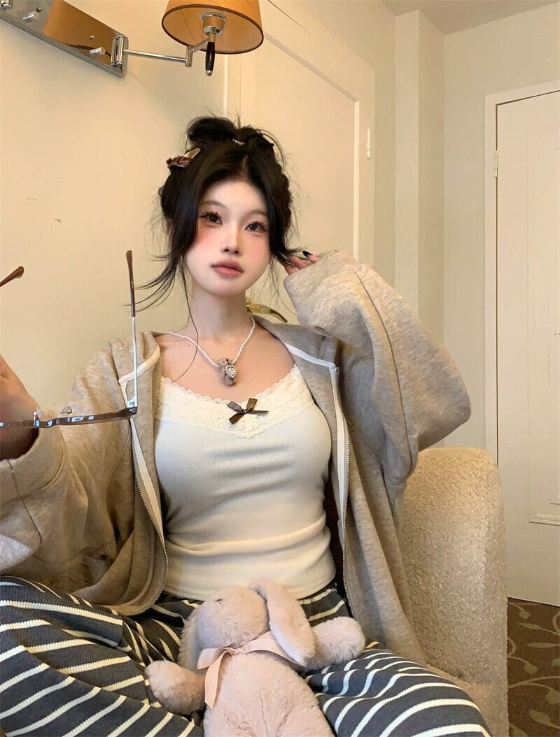 ベルベット肥厚フード付きスウェットシャツジャケット女性春と秋 2024 新オートミールカラールーズ長袖ジッパーカーディガントップ ロング スプリング 春物 オータム 秋物 missk95050357274