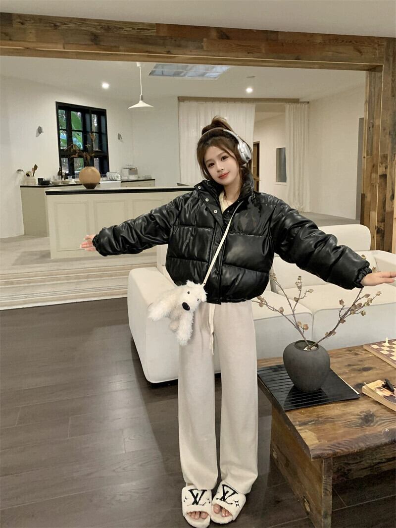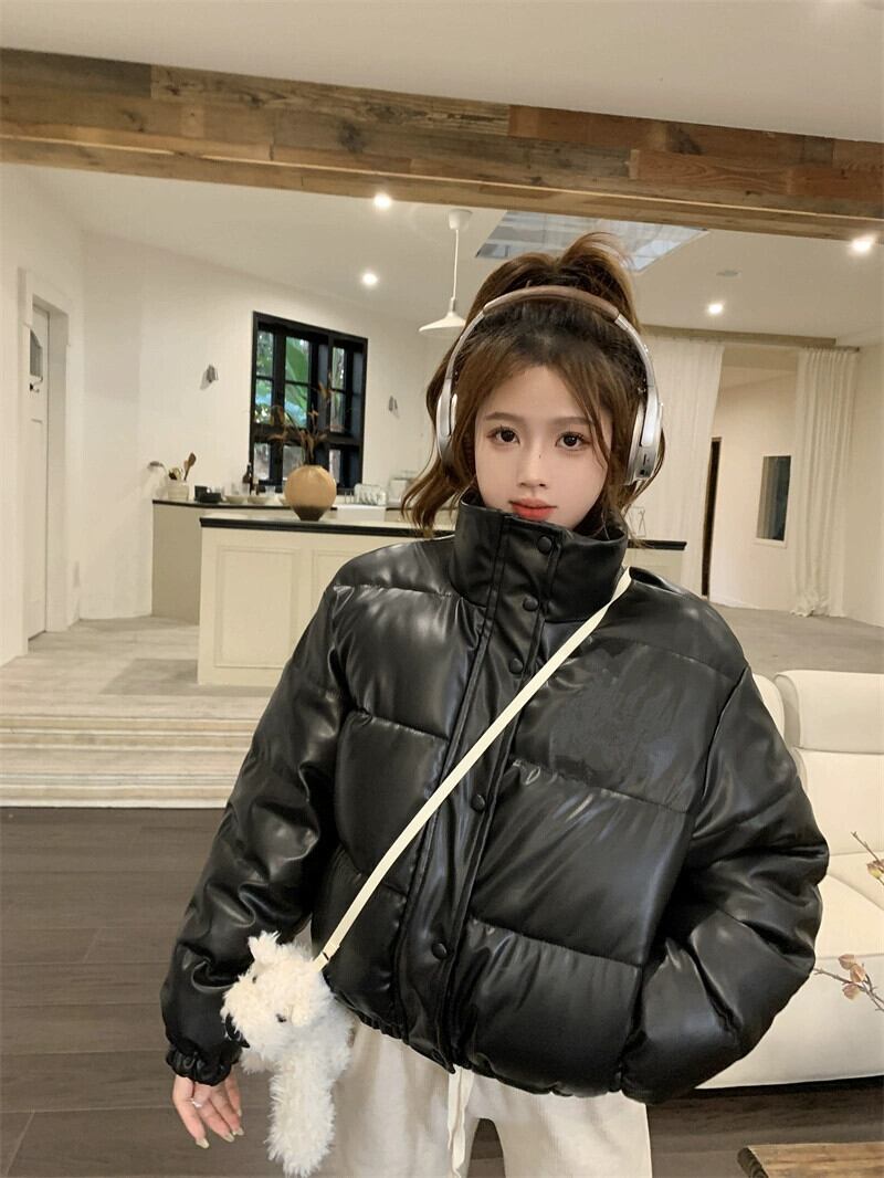 メイラードキルティング肥厚レザージャケット女性春 2024 新しいレトロショートルーズオートバイコットンジャケット スプリング 春物 missk87569600198