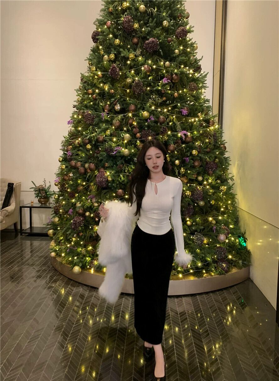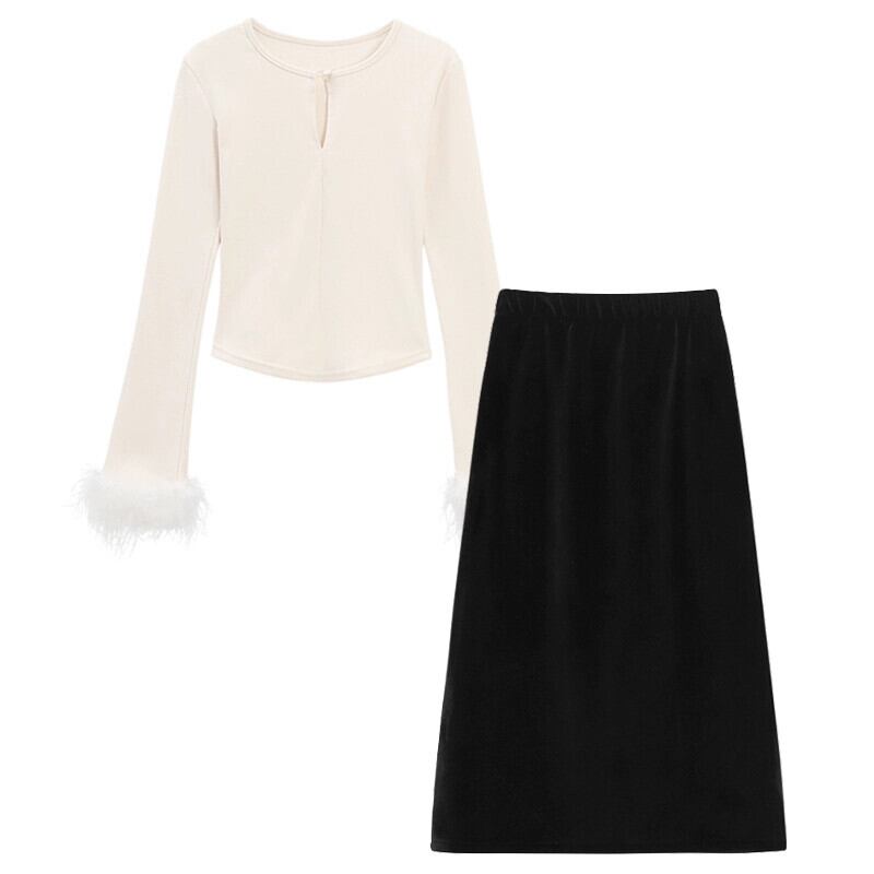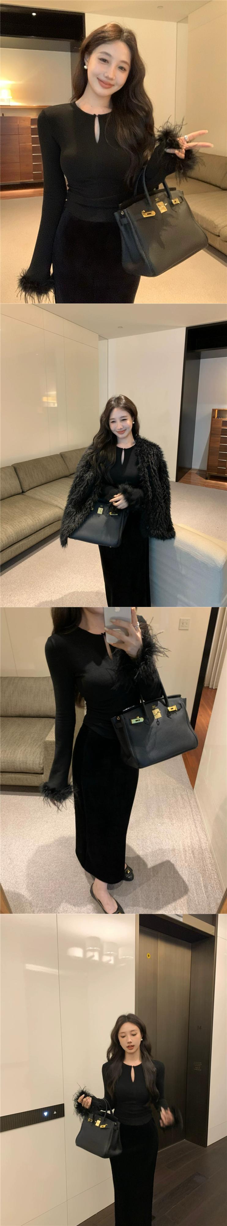 毛皮のようなステッチ長袖 Tシャツ女性の 2024 年春と秋の新デザイン純粋な欲望トップスリムフィットインナーレイヤリングシャツ ロング スプリング 春物 オータム 秋物 ピュア missk91762082840
