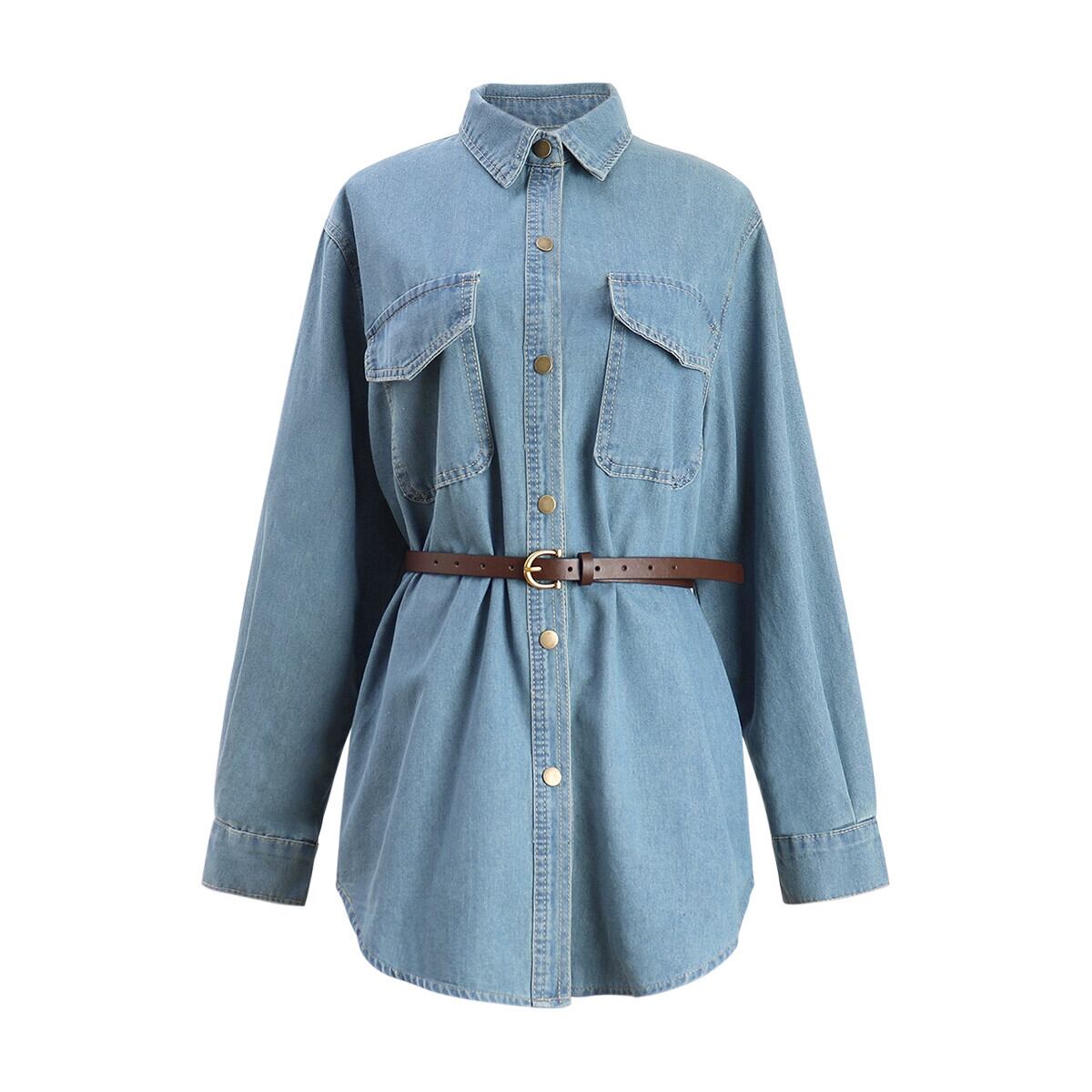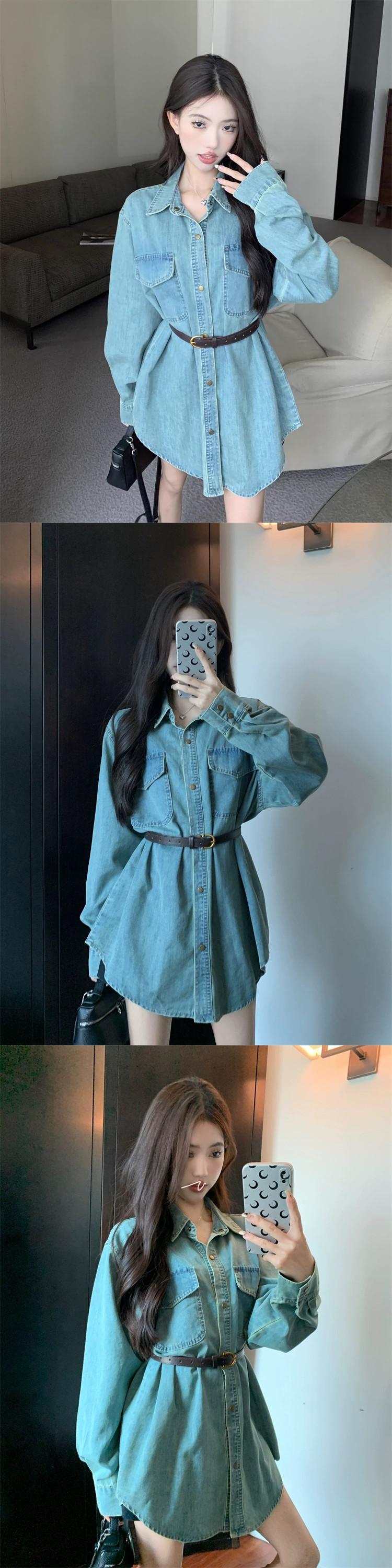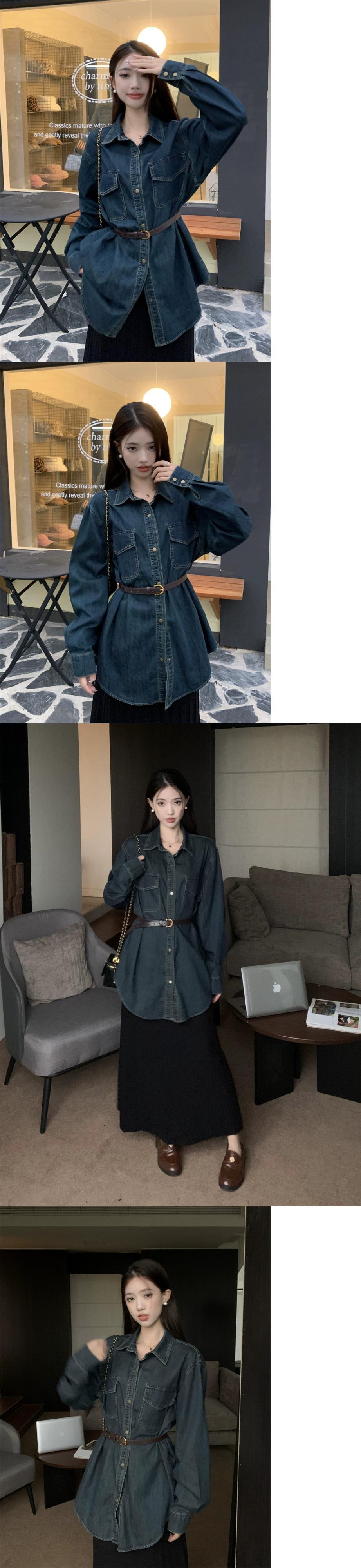 レトロなポロカラーデニムシャツの女性の春 2024 新デザインルーズミッドレングスシャツ長袖トップ ロング スプリング 春物 missk22478111989