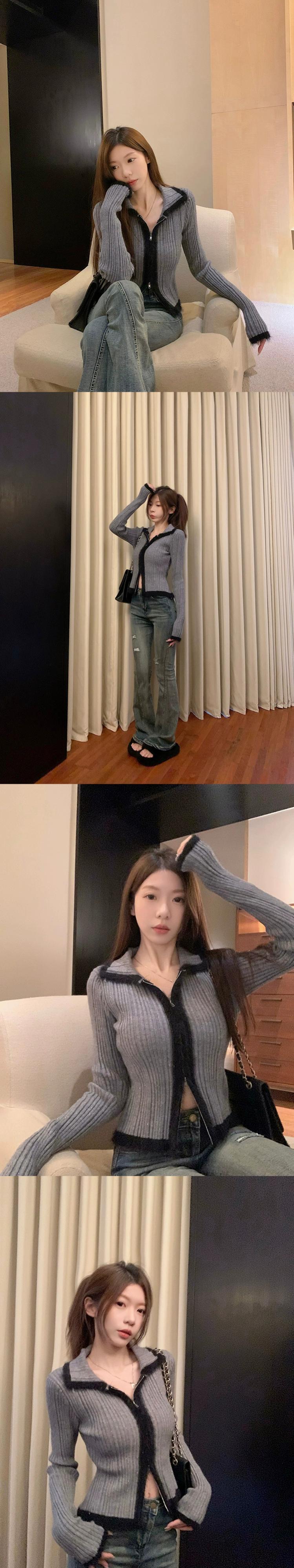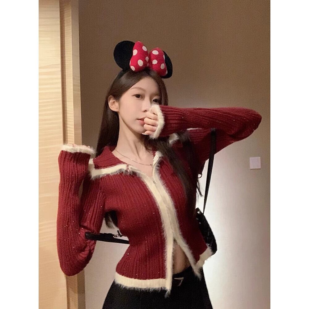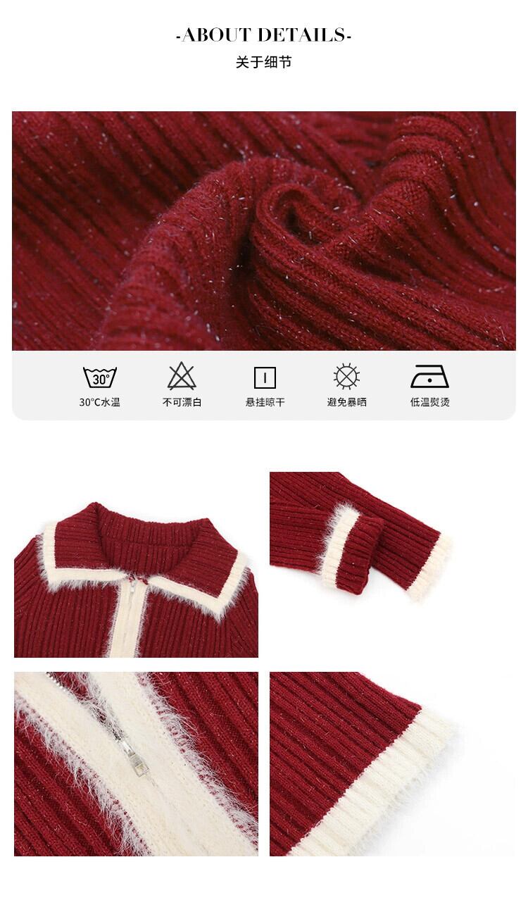 ミスココリの毛皮のようなパッチワークセーター、女性の春と秋のラペル、年の赤い純粋な欲望のセーターカーディガン レッド スプリング 春物 オータム 秋物 ピュア missk31641418706