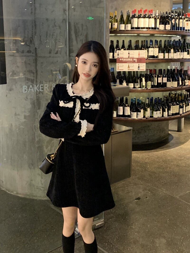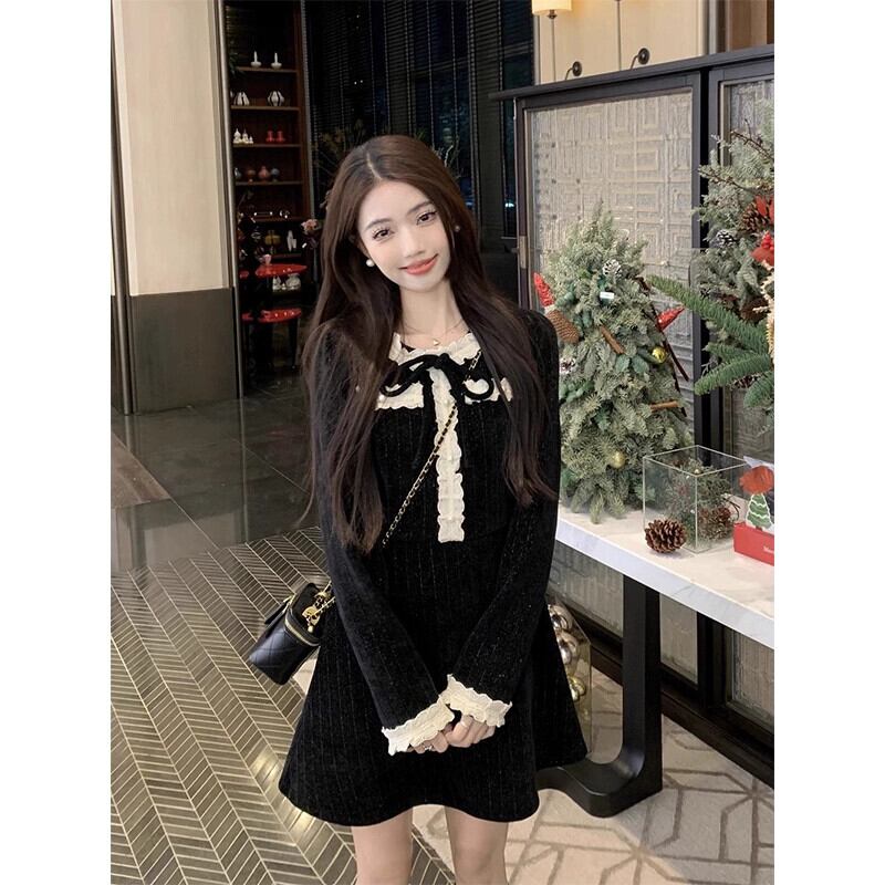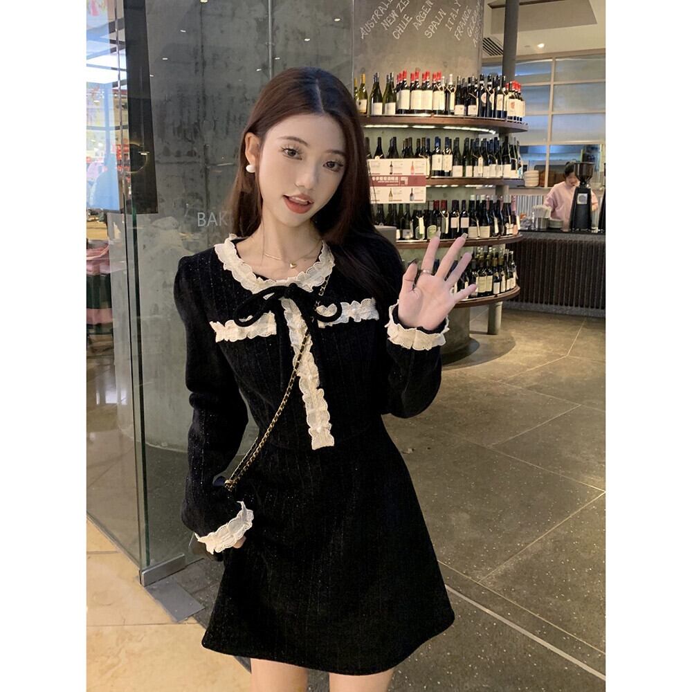フランス風の小さなスタイルの黒のドレスの女性の春と秋、おしとやかな気質、レースのプリンセスドレス、短いスカートの小さな人 ショート ブラック スプリング 春物 オータム 秋物 missk35721556261