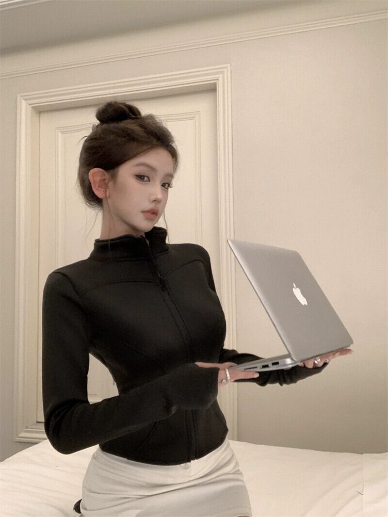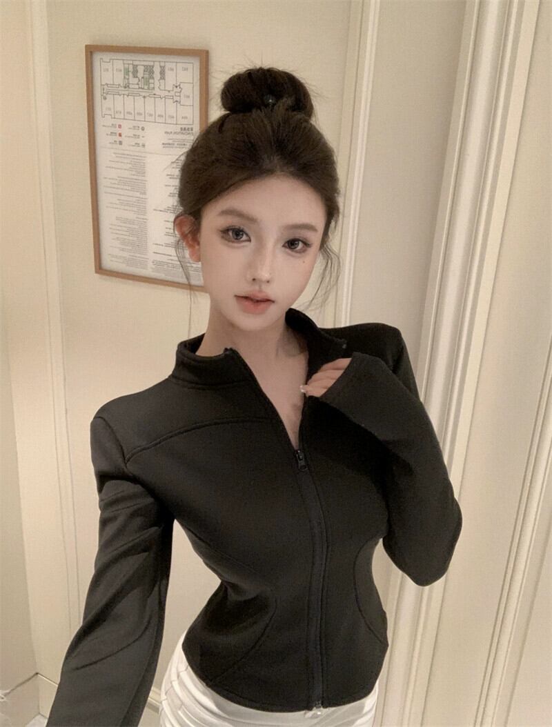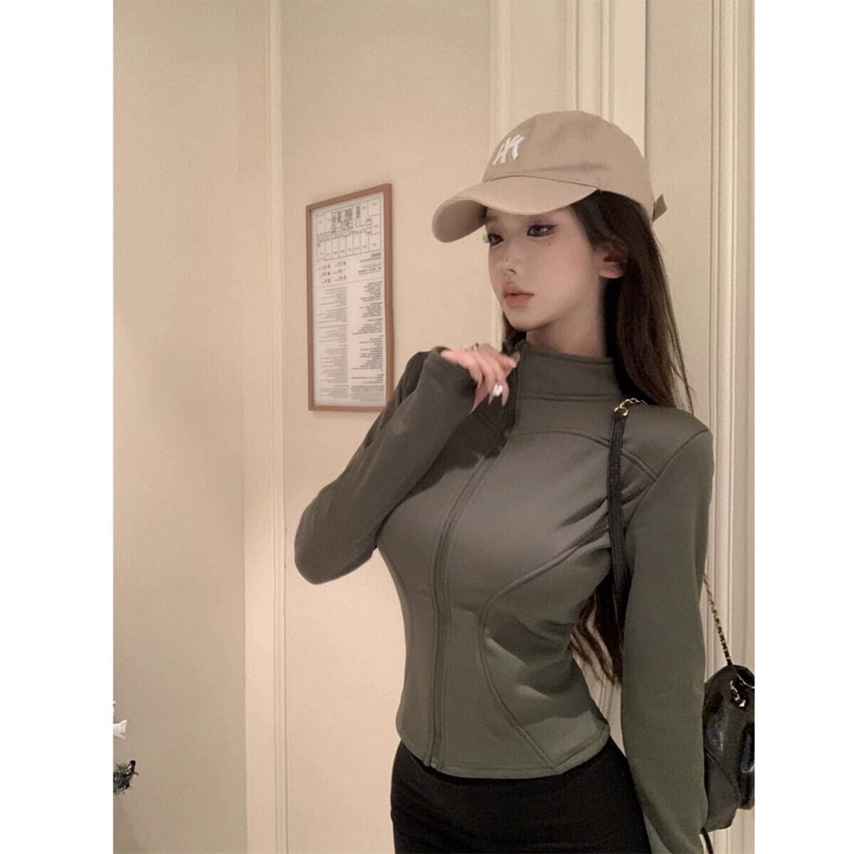 厚いベルベットスタンドカラージャケット女性の春と秋 2024 新しい純粋な欲望スポーツ痩身スリムスタイル長袖トップ ロング スプリング 春物 オータム 秋物 ピュア missk33646292531