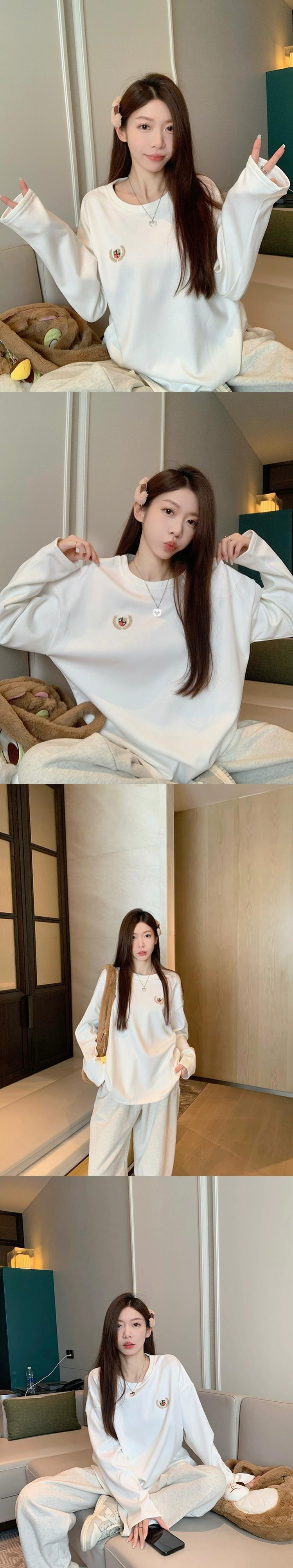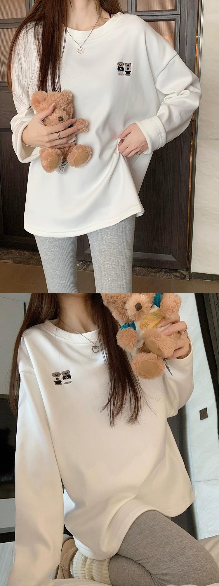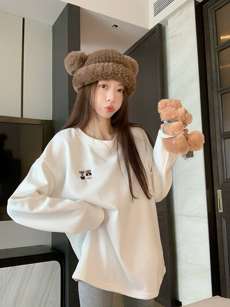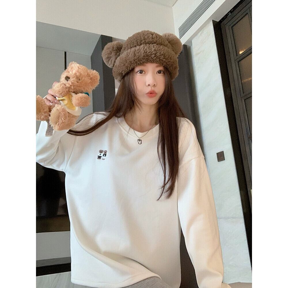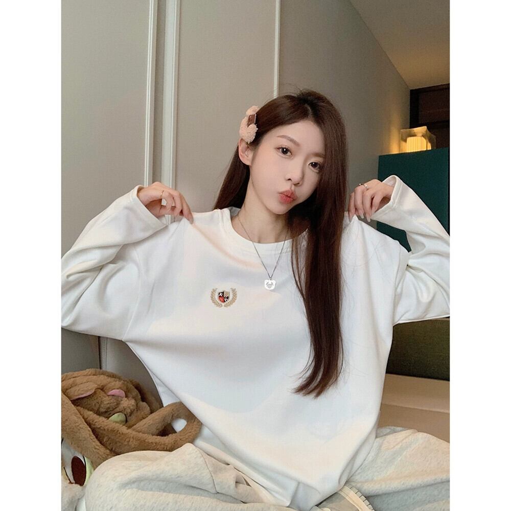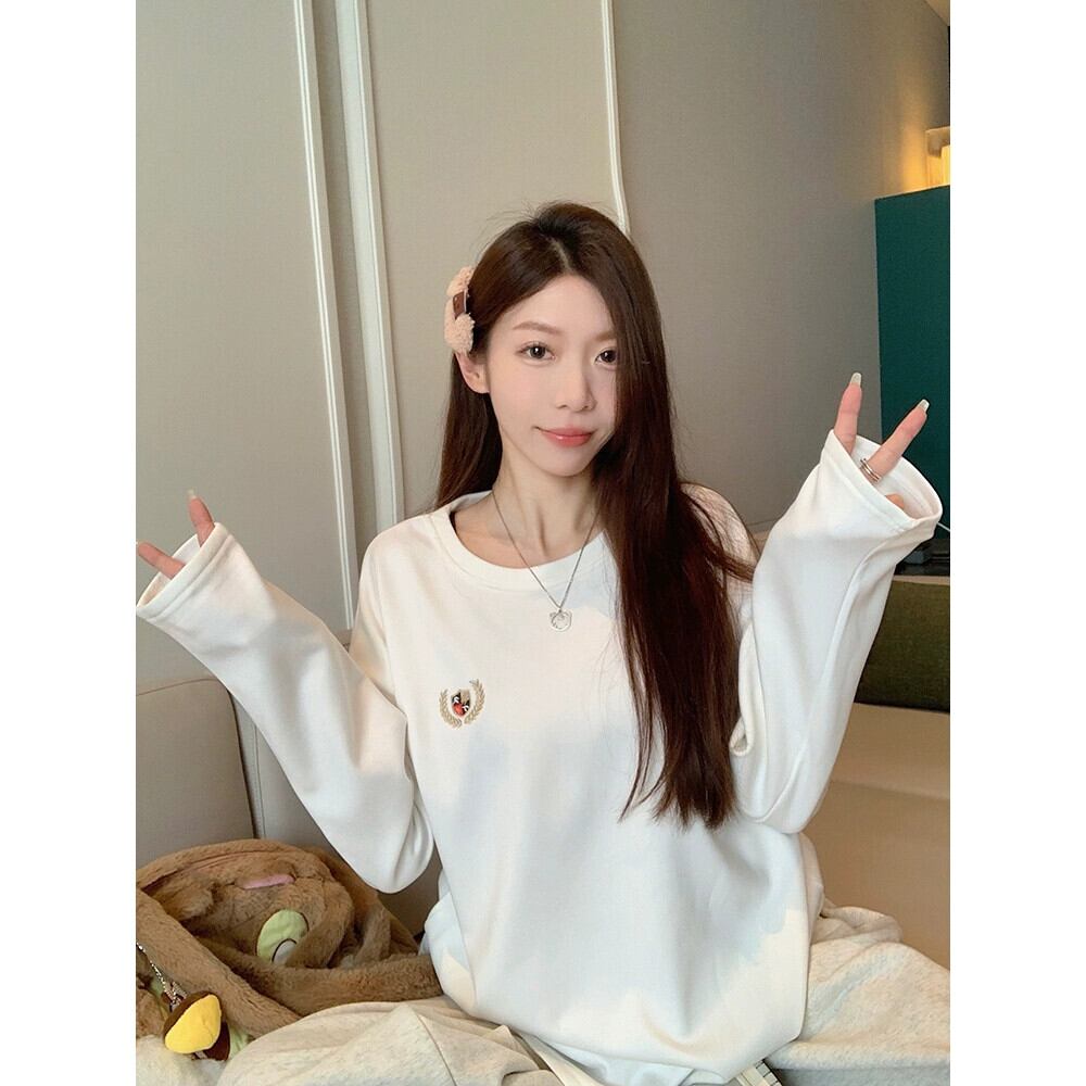 ベルベットと厚みのあるインナーボトムシャツの女性、春と秋のデザイン、刺繍入りルーズミッドレングス長袖Tシャツホワイトトップ ロング レッド スプリング 春物 オータム 秋物 missk92489743756