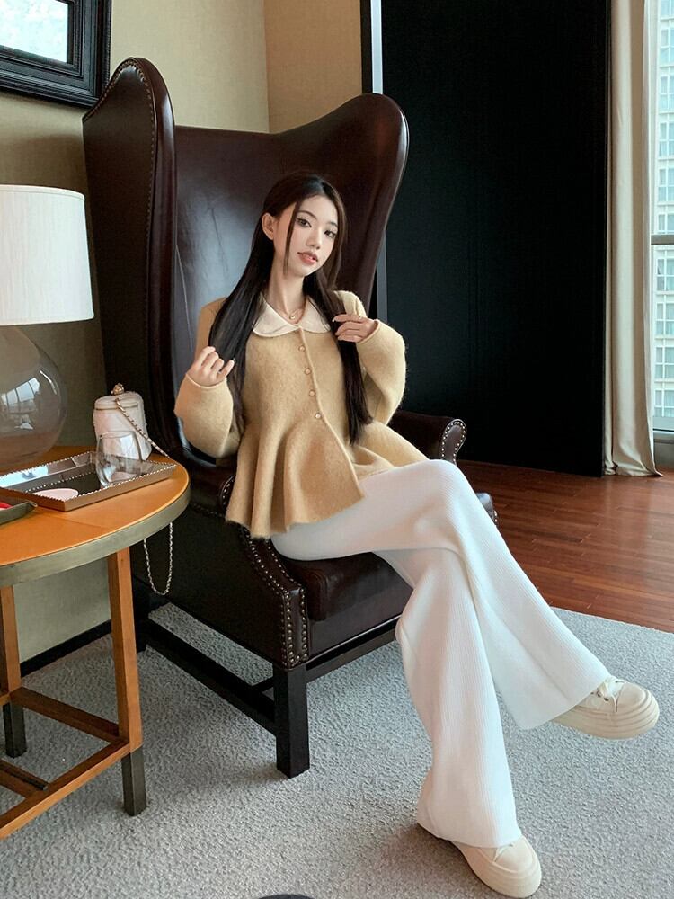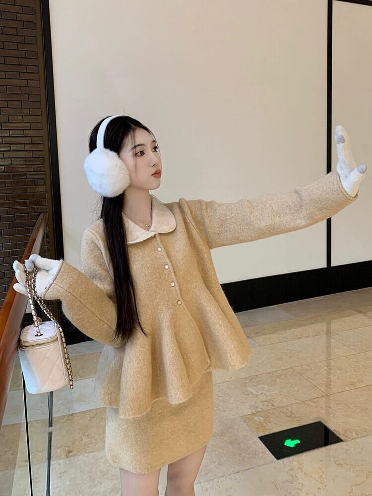 Xiaoxiangfeng スーツ女性の春と秋の人形の襟肥厚セータージャケットニットヒップスカートファッション 2 点セット スプリング 春物 オータム 秋物 missk12444118663