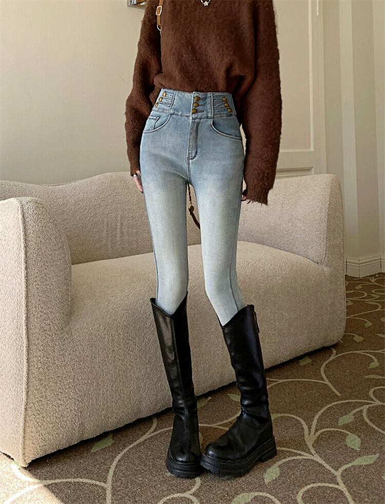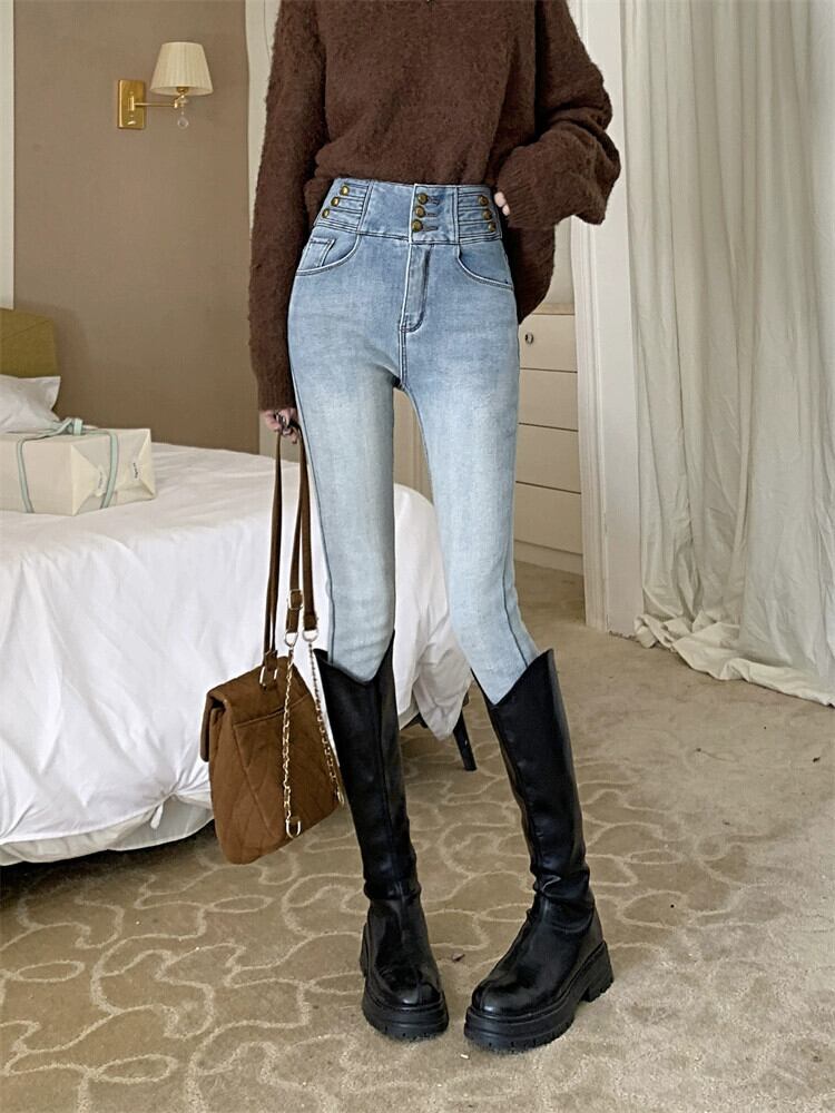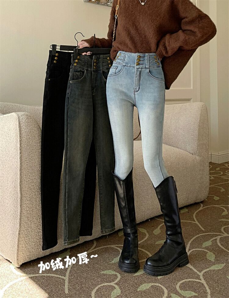 ベルベットの厚みのあるジーンズの女性、春と秋のズボン、レトロなハイウエスト、スリムフィット、スリムフィット、ペンシルパンツ スプリング 春物 オータム 秋物 missk12571601266