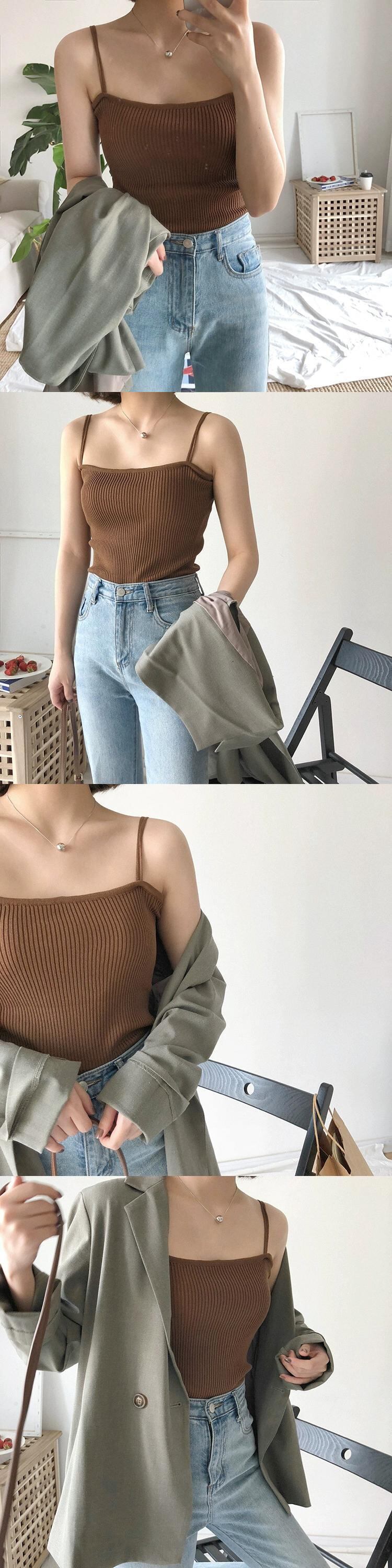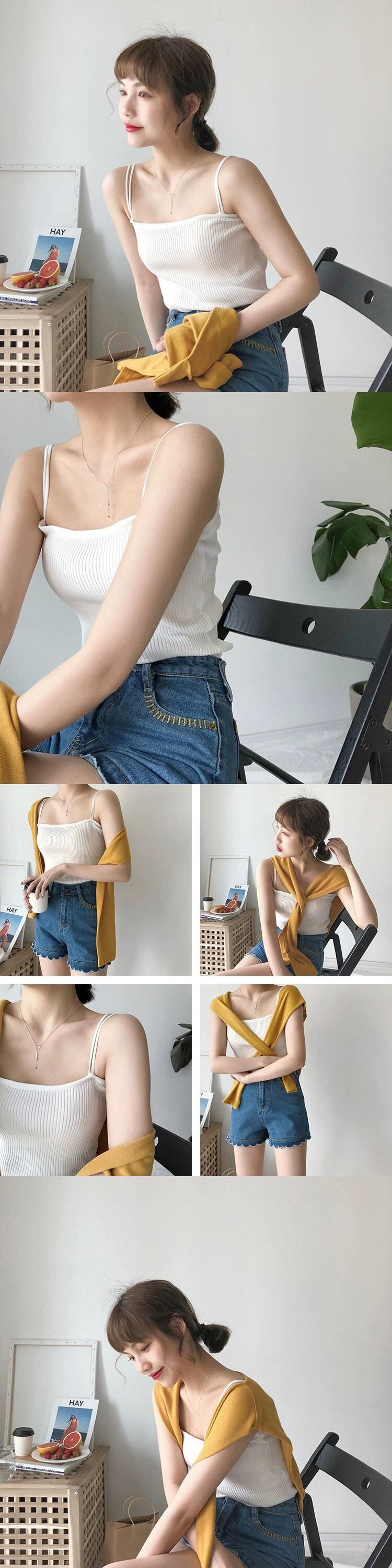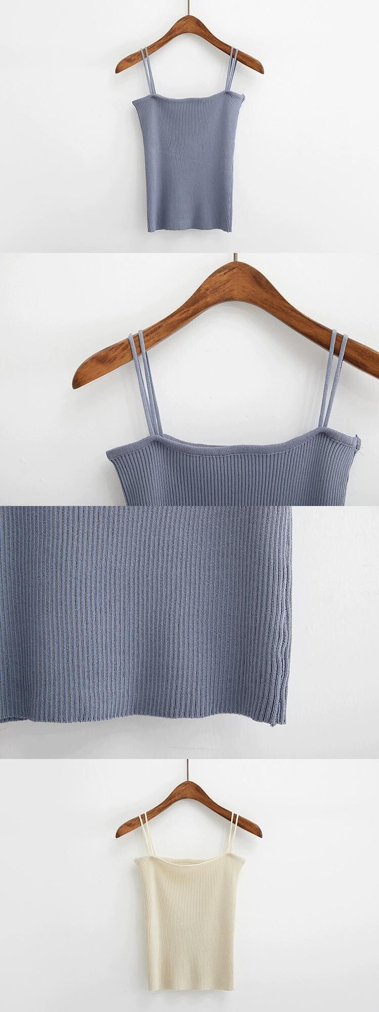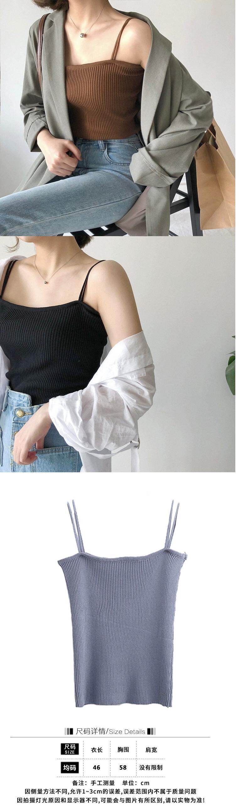 2024 新しい夏のスタイルスリムフィット弾性サスペンダーニットウェアアウターベストショートボトシャツトップス女性 エラスティック 伸縮 サマー 夏物 missk41406735180