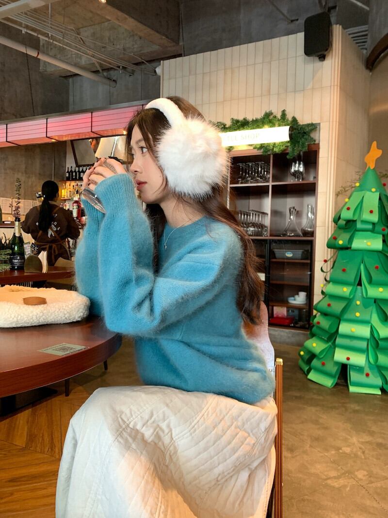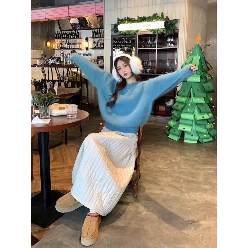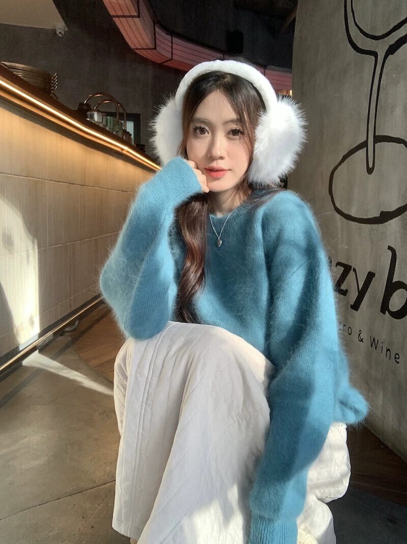 優しいブルーのソフトワックスセーター女性の春のハイエンド怠惰なスタイル肥厚暖かいルーズプルオーバーニットトップ スプリング 春物 missk31376786328