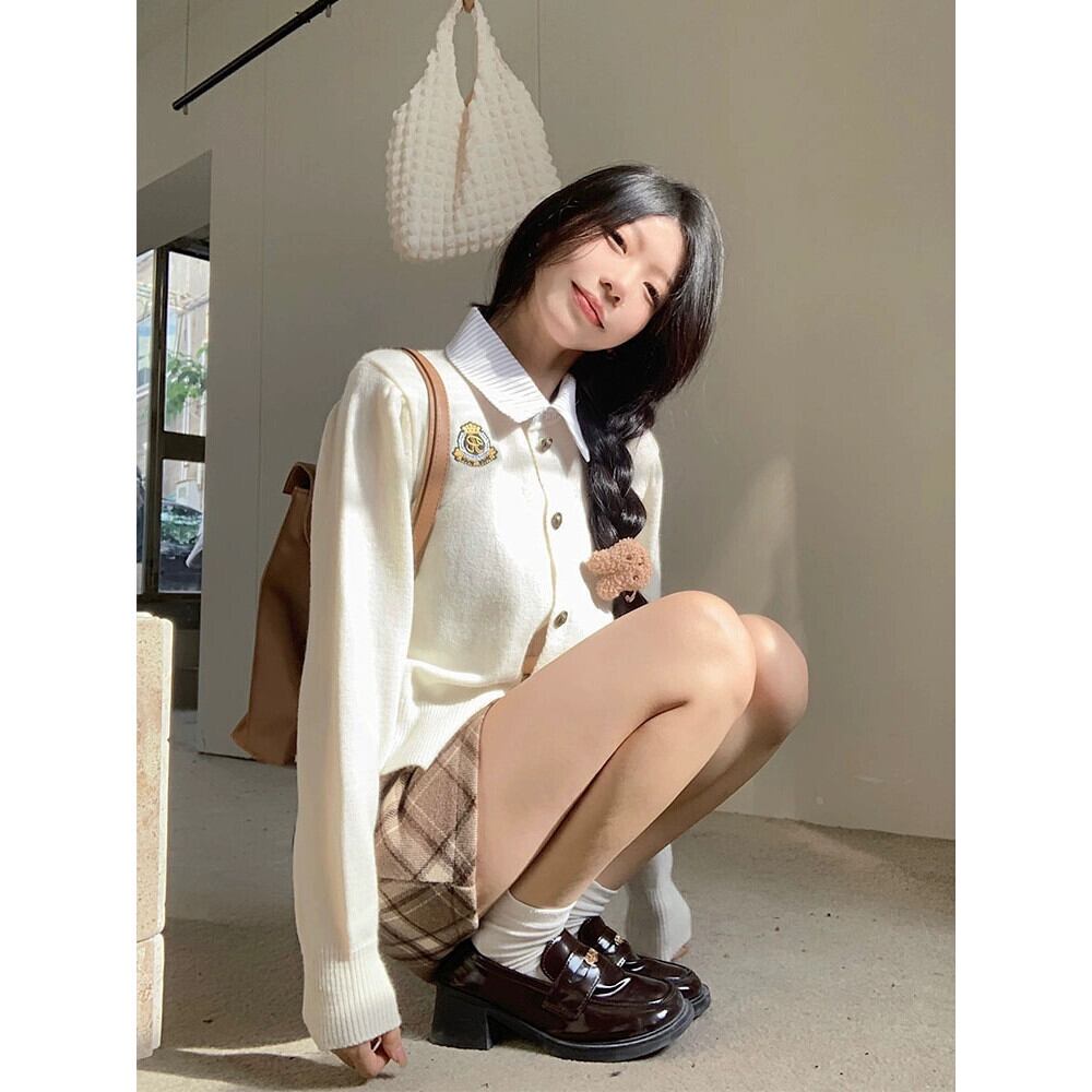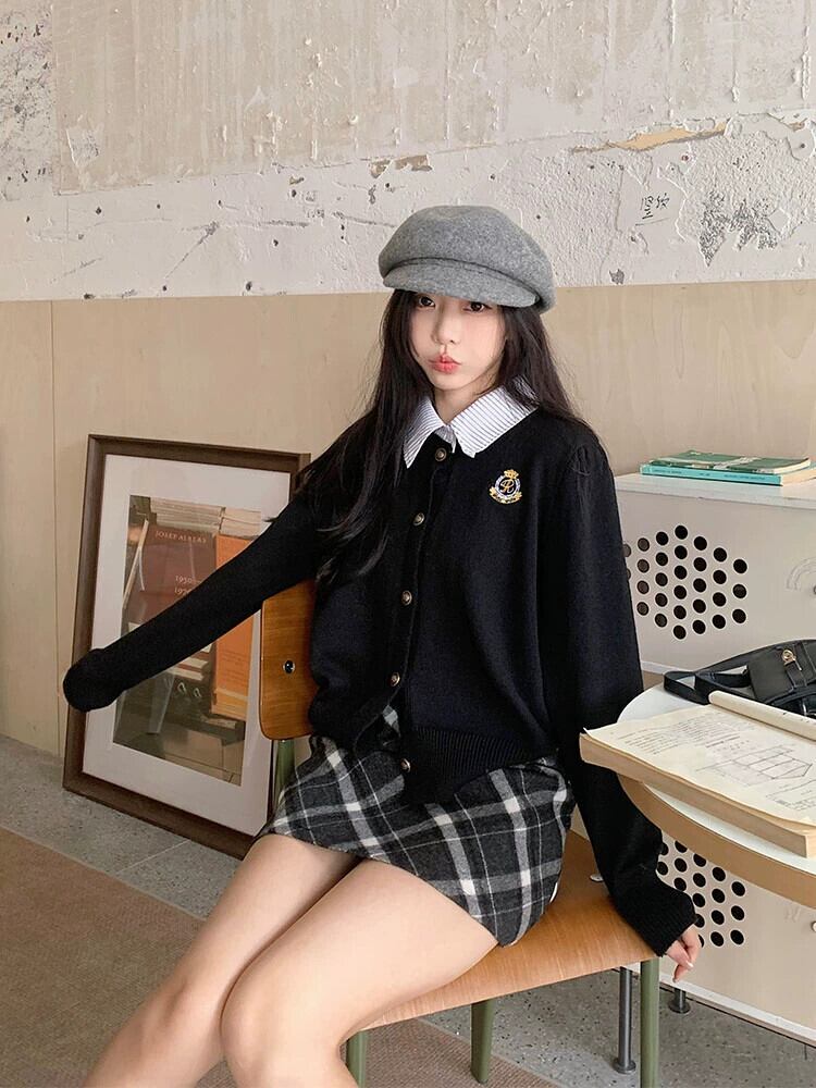 スタイルスーツ女性春老化軽減刺繍偽ツーピースセーターチェック柄ヒップカバースカートファッショナブルなツーピースセット スプリング 春物 missk83395630849