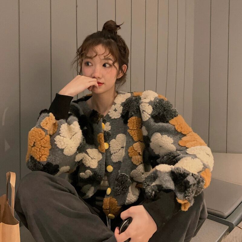 ED 立体花ぬいぐるみジャケット女性の春と秋 2024 新しいレトロなルーズ肥厚長袖シックなトップ ロング スプリング 春物 オータム 秋物 フラワーデザイン missk2537627640
