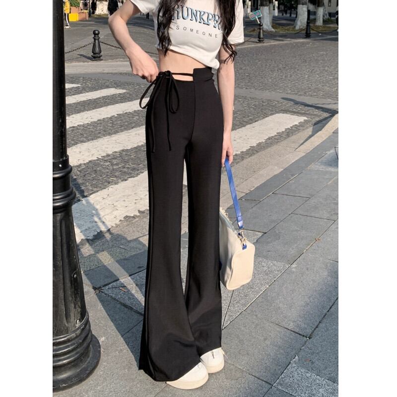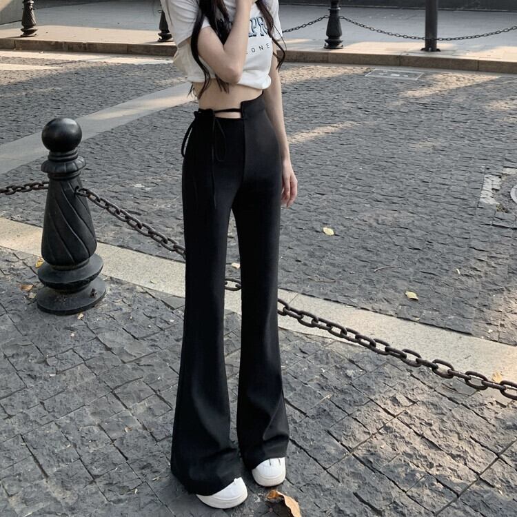 黒マイクロフレアスーツパンツ女性 2024 春の新レトロ香港スタイルレースアップスリムカジュアルロングパンツ ブラック スプリング 春物 missk99312188878