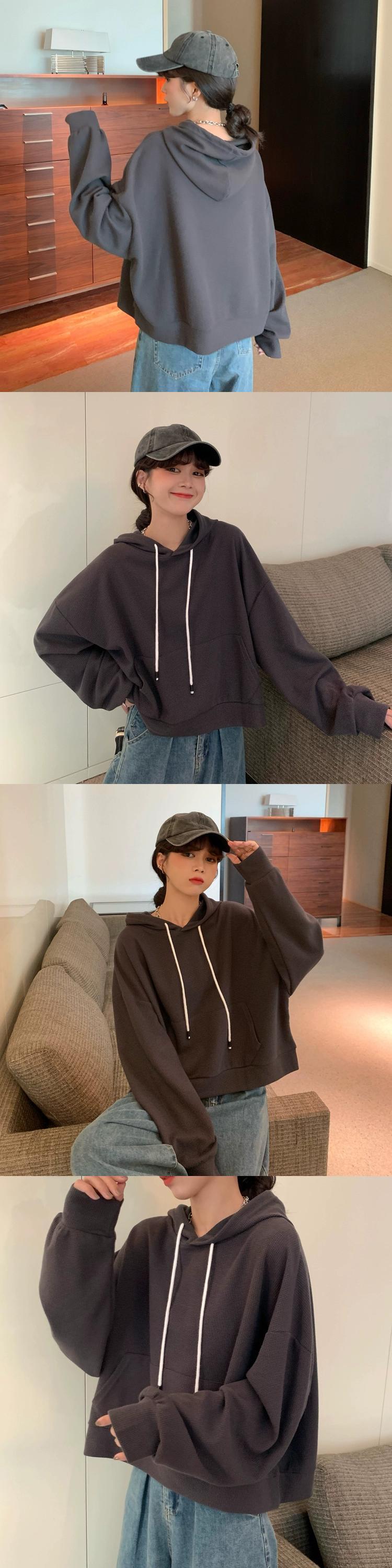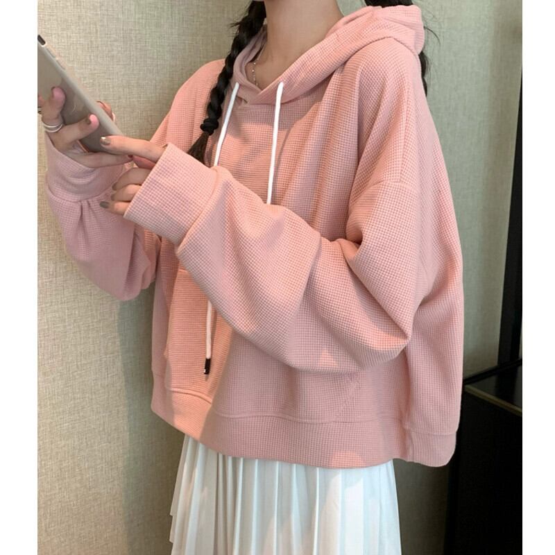 ショートワッフルフード付きスウェットシャツ春の新スタイル小さなルーズデザインニッチジャケットトップス女性春 スプリング 春物 missk49800771546
