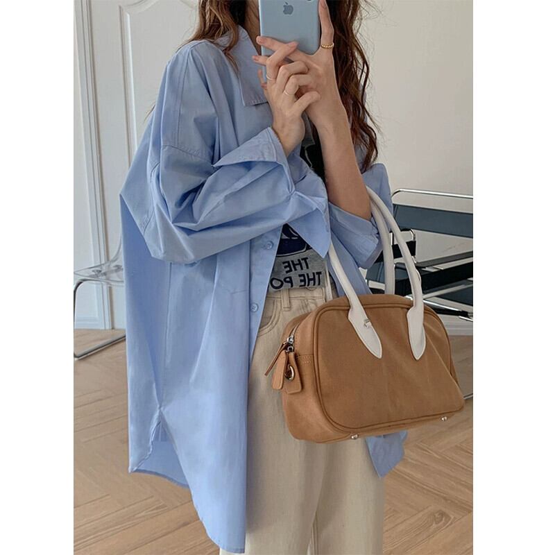 2024 春の新ファッションシックなフランスの年齢を軽減するルーズなミドル丈の万能長袖シャツトップスレディースファッション ロング スプリング 春物 missk18777934677