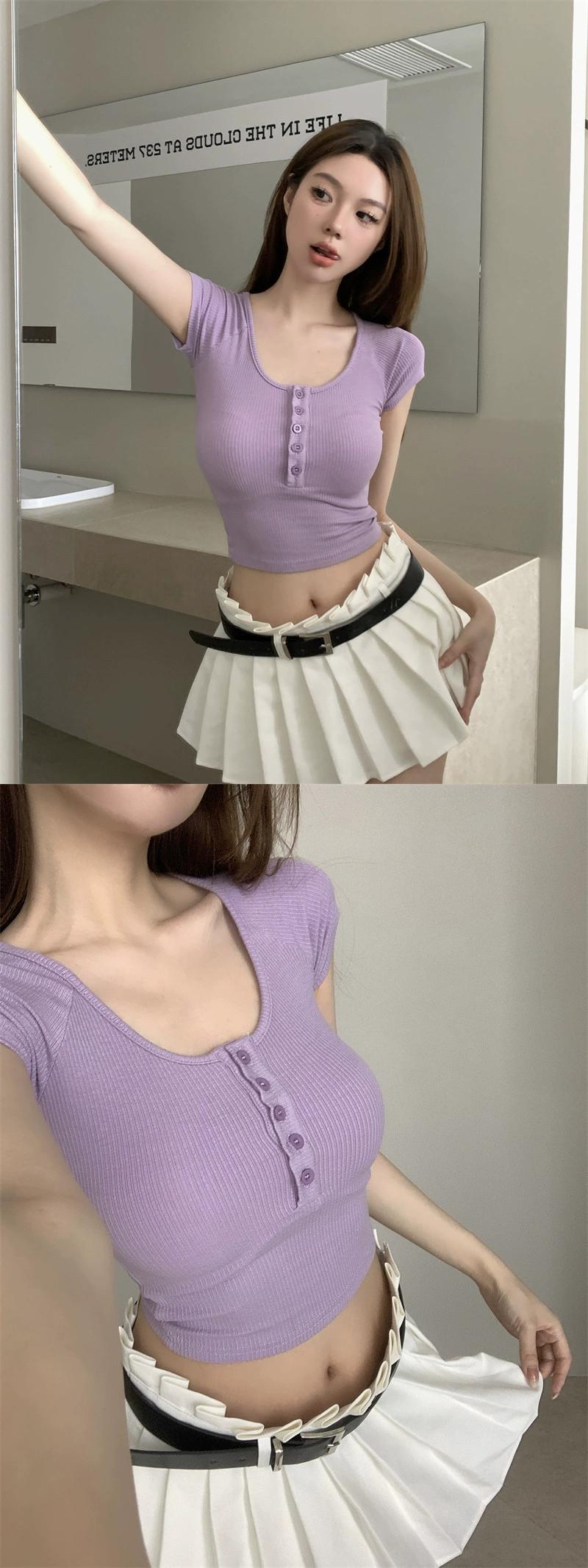 純粋な欲望スタイル半袖 T シャツの女性の春バージョン 2024 新しいスリムフィットショートスタイルへそ出し弾性多用途トップ エラスティック 伸縮 スプリング 春物 Tシャツ missk78074156330