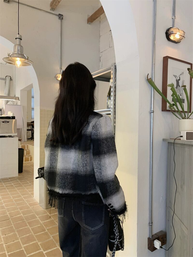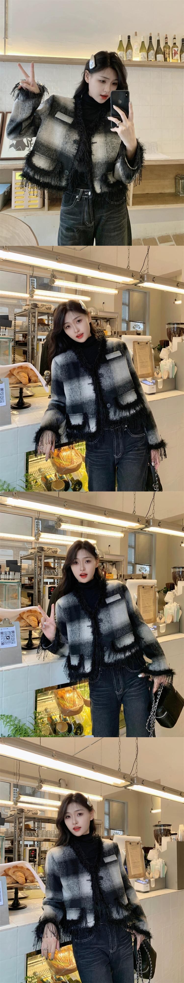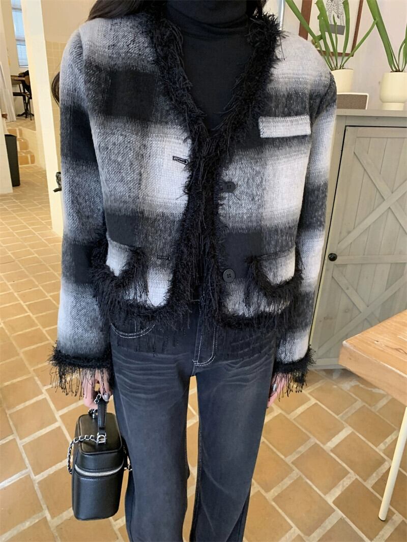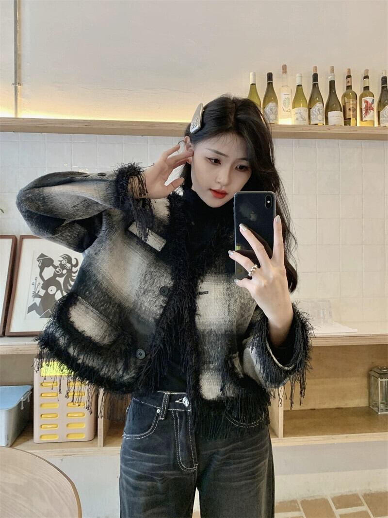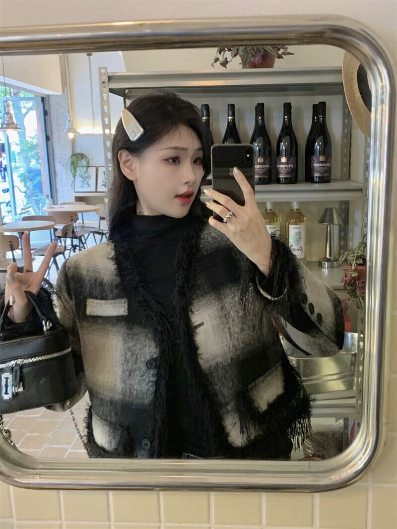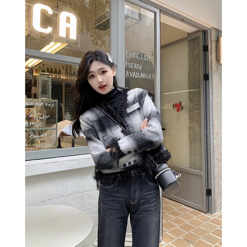 Xiaoxiangfeng 電話コントラストストライプジャケット女性の 2024 年春と秋の新しいフレンチスタイルのショート長袖トップ ロング スプリング 春物 オータム 秋物 missk18818464236