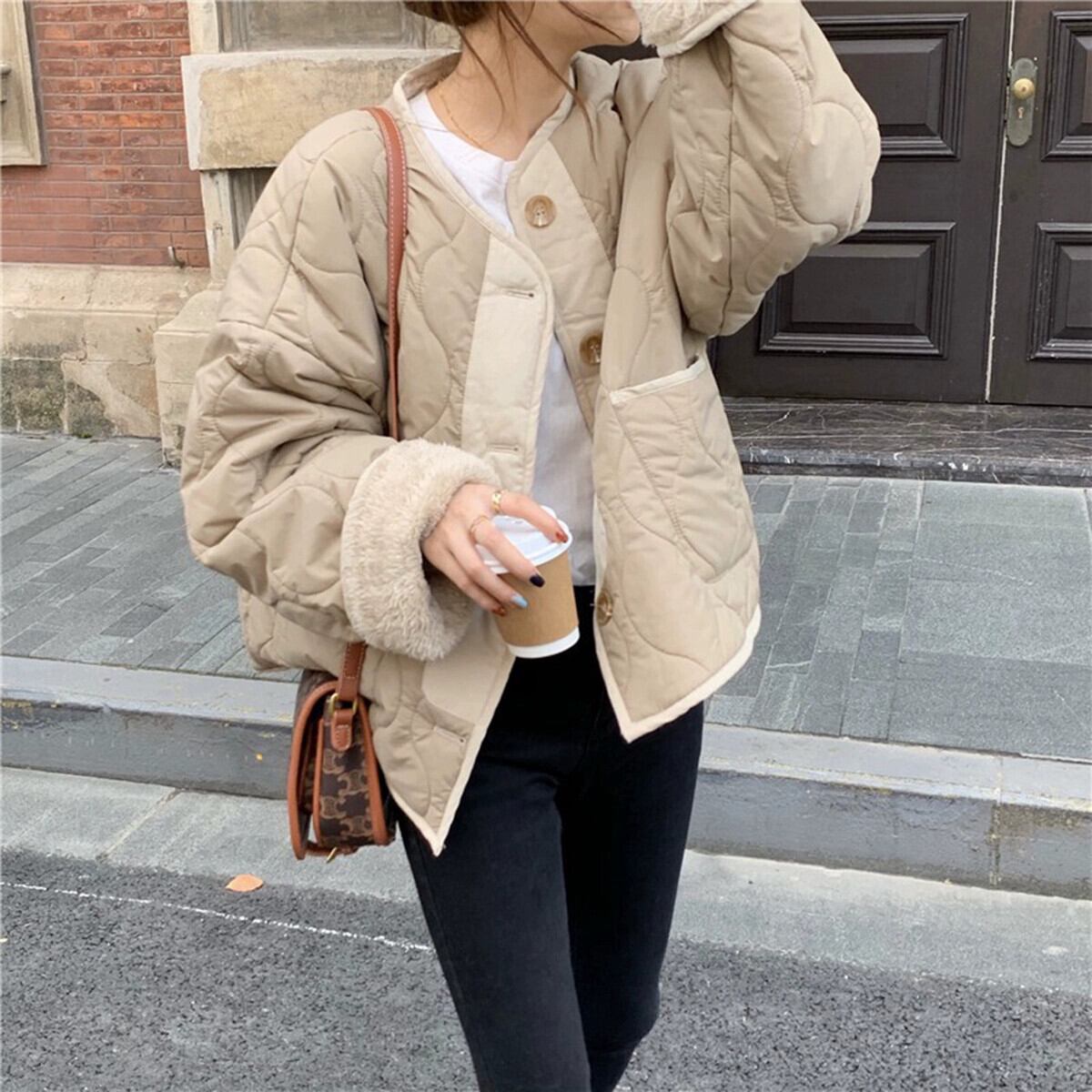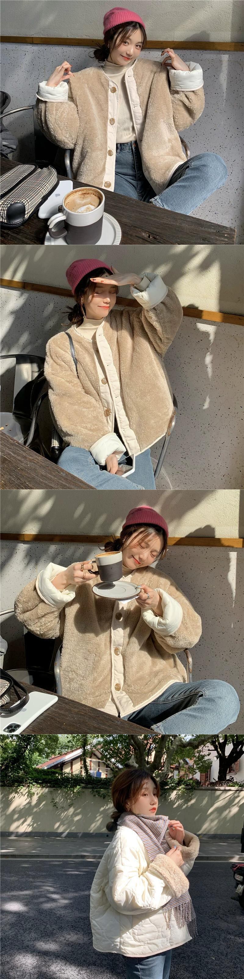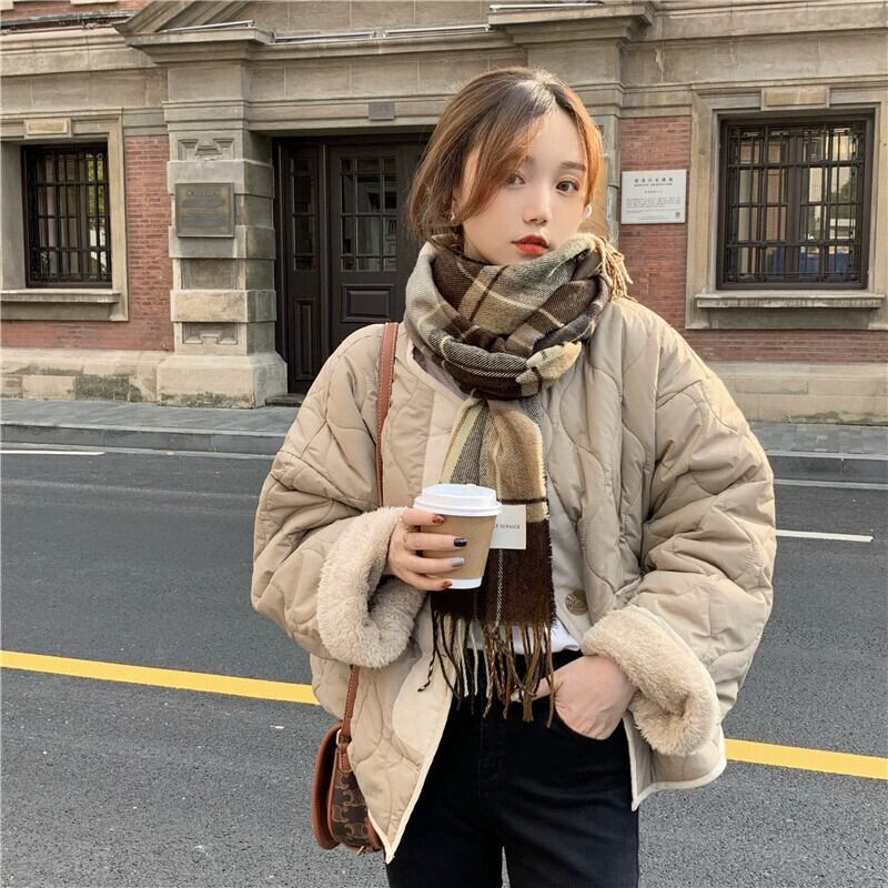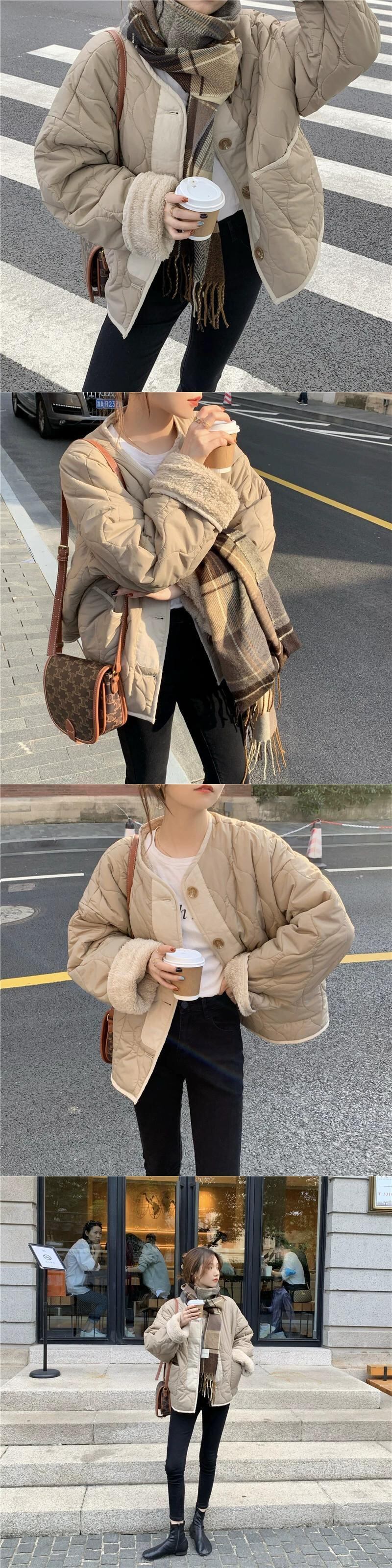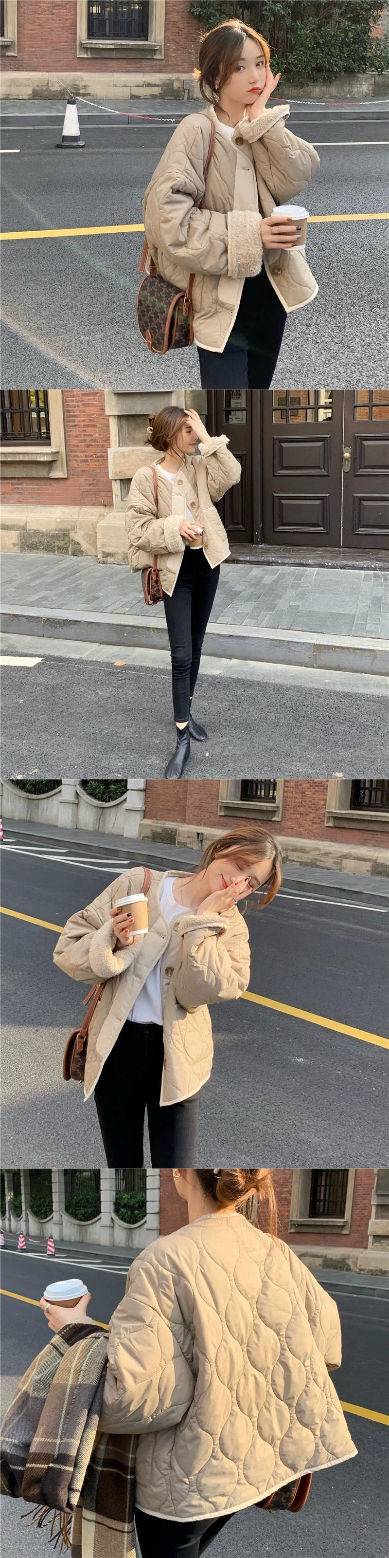 ベルベットと厚みのあるコットンコートの女性の春と秋の 2024 新しい模造ラムウールスプライシングルーズ 2 着長袖コットンコート ロング スプリング 春物 オータム 秋物 missk17219331119