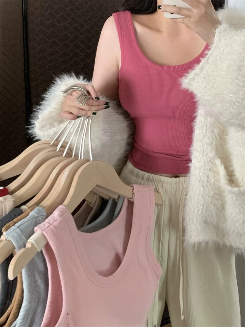レディース春秋バージョン 2024 スリムフィットショートボトリングトップ、ブラッシュウールウォームベスト、内側胸パッド付き スプリング 春物 オータム 秋物 missk88625681633