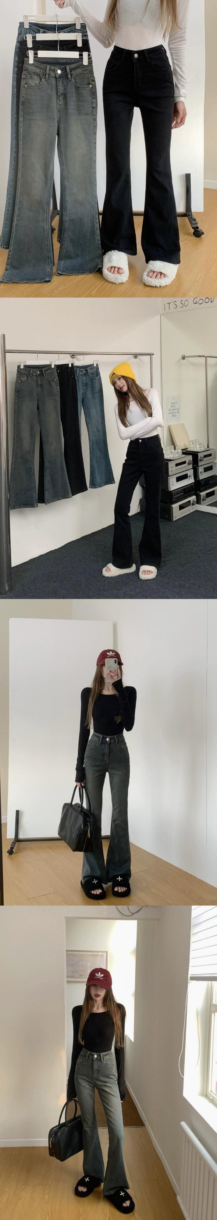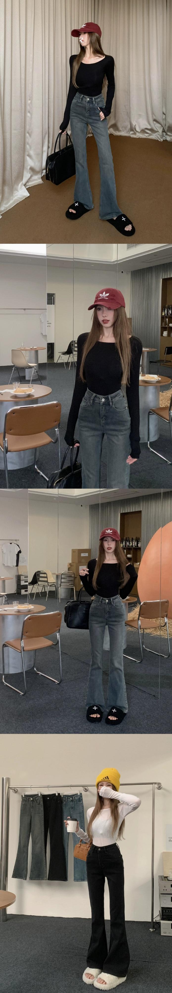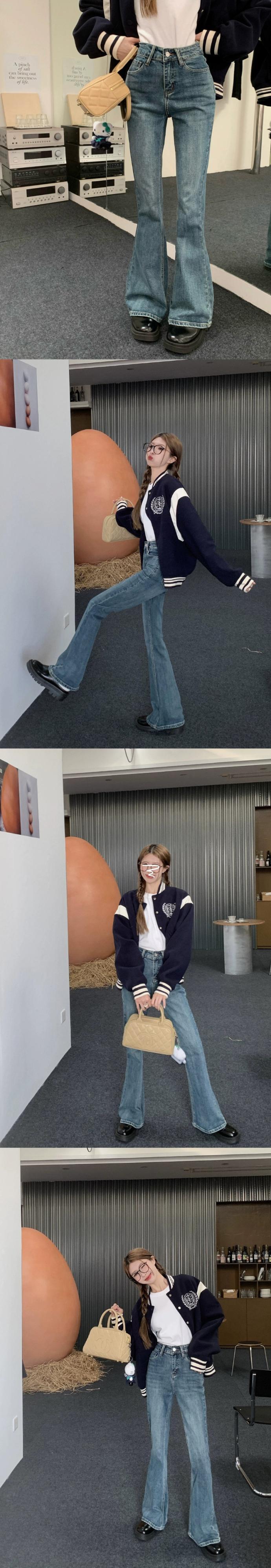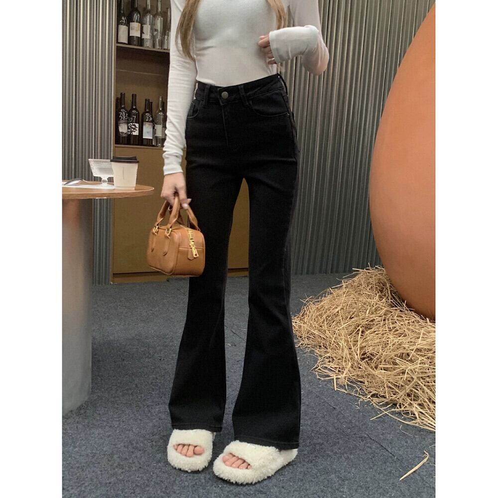 レトロウォッシュマイクロフレアジーンズ女性春と秋2024新しいハイウエストスリムストレッチフロアレングスパンツフレアパンツ レッド スプリング 春物 オータム 秋物 missk64570289737