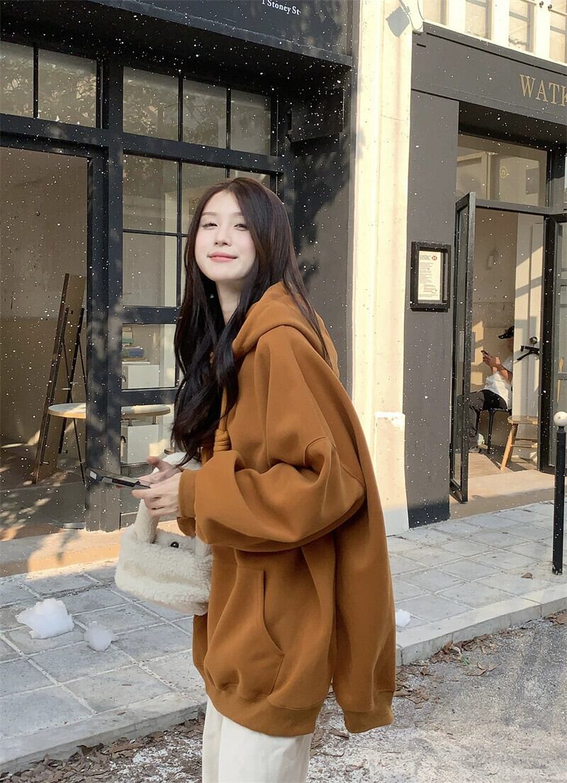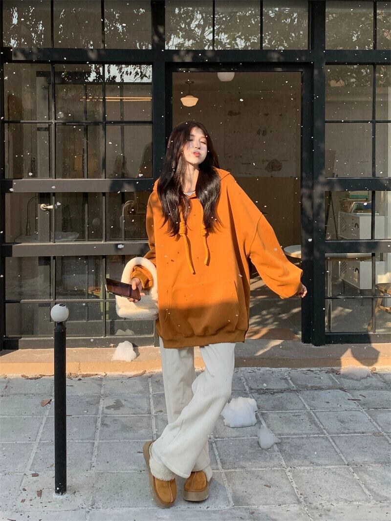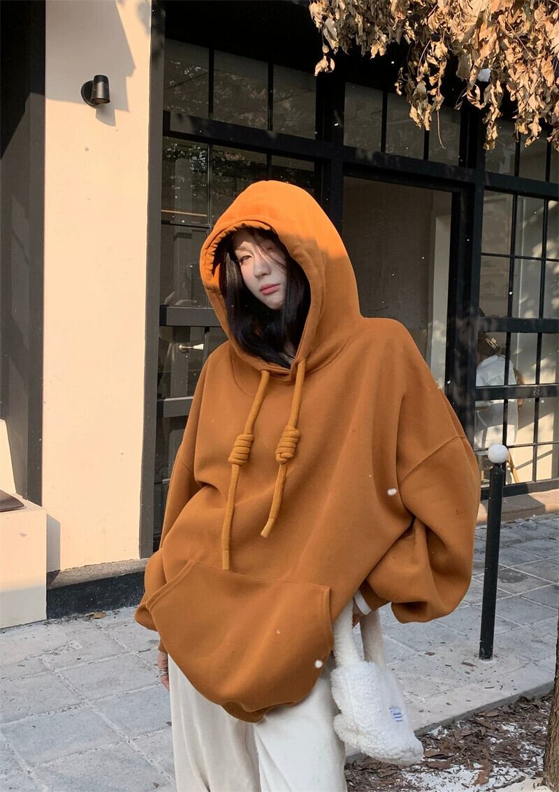 巾着フード付きスウェットシャツの女性の春バージョン 2024 新しい塩スタイル揚げストリートルーズミッドレングスラウンドネック長袖トップ ロング スプリング 春物 Oネック missk20046979299