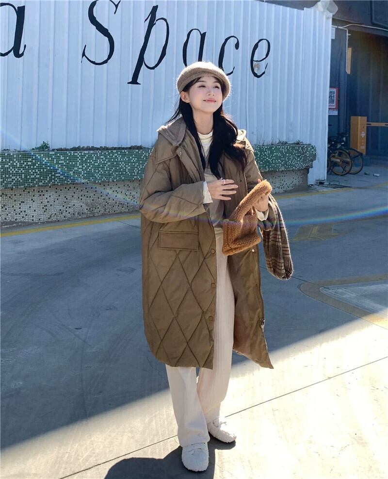 ダイヤモンドフード付きコットンコート女性春 2024 新デザインレトロ肥厚ルーズロングコットンコートイン スプリング 春物 missk84682749852