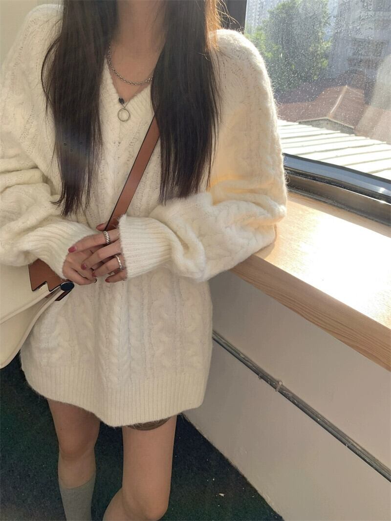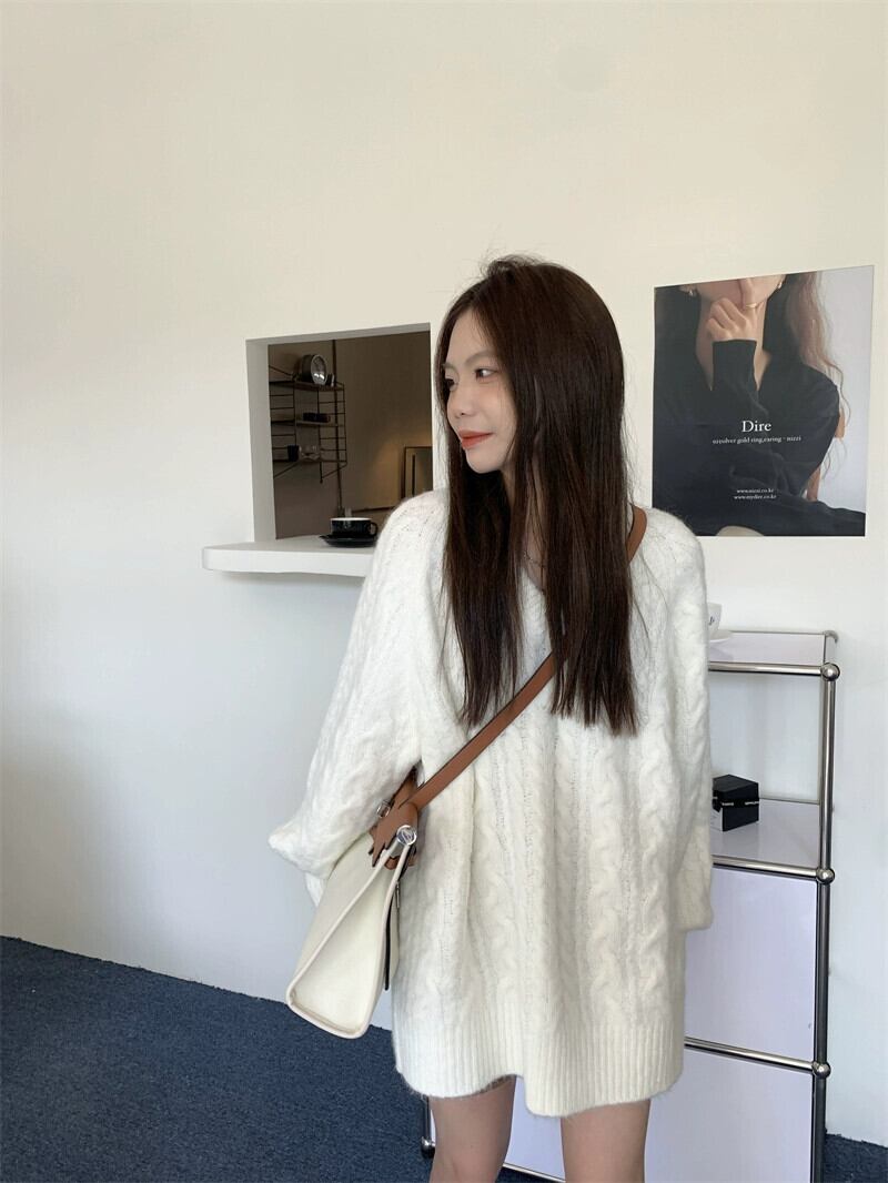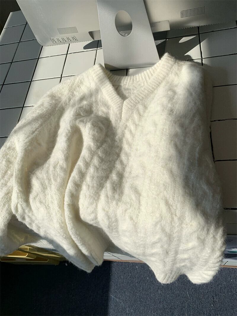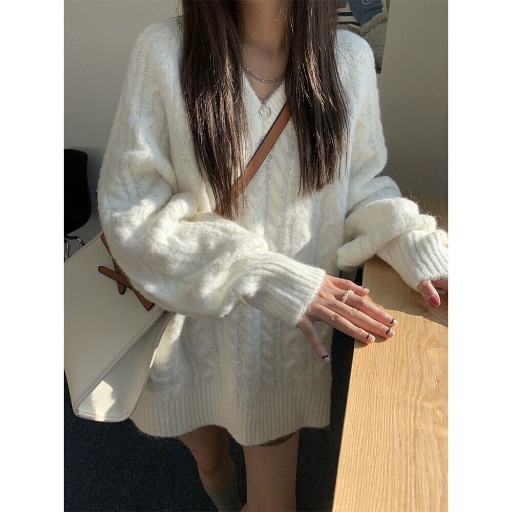 怠惰なスタイル V ネックツイスト長袖セーター女性春と秋 2024 新しいスタイル多用途ルーズカジュアルニットトップ ロング スプリング 春物 オータム 秋物 Vネック missk40960471001