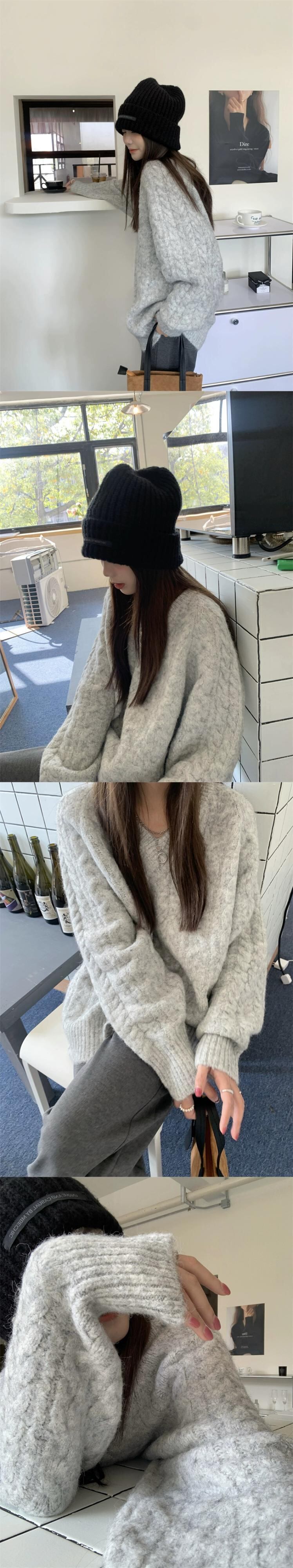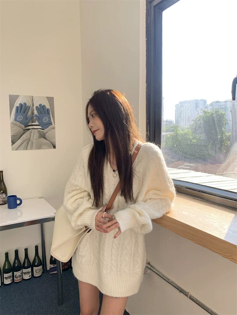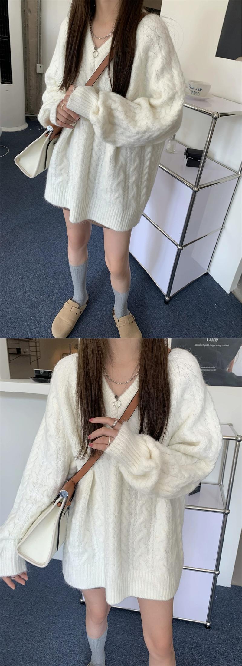 怠惰なスタイル V ネックツイスト長袖セーター女性春と秋 2024 新しいスタイル多用途ルーズカジュアルニットトップ ロング スプリング 春物 オータム 秋物 Vネック missk40960471001