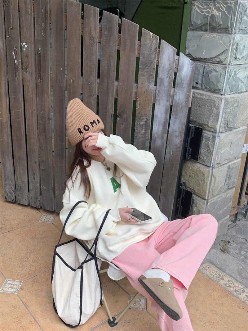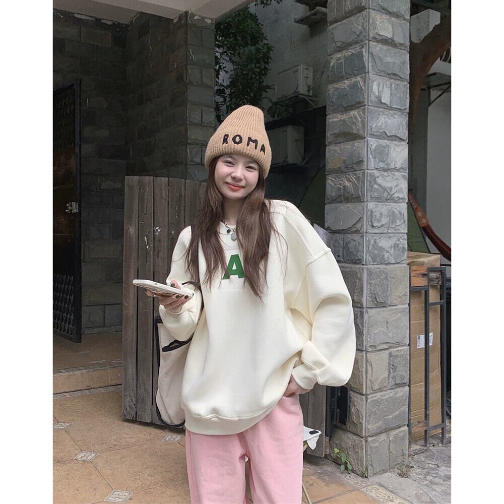 ベルベット肥厚トレーナー女性春と秋バージョン 2024 新しい刺繍文字ルーズミッドレングスプルオーバー長袖トップ ロング レッド スプリング 春物 オータム 秋物 missk57748171965