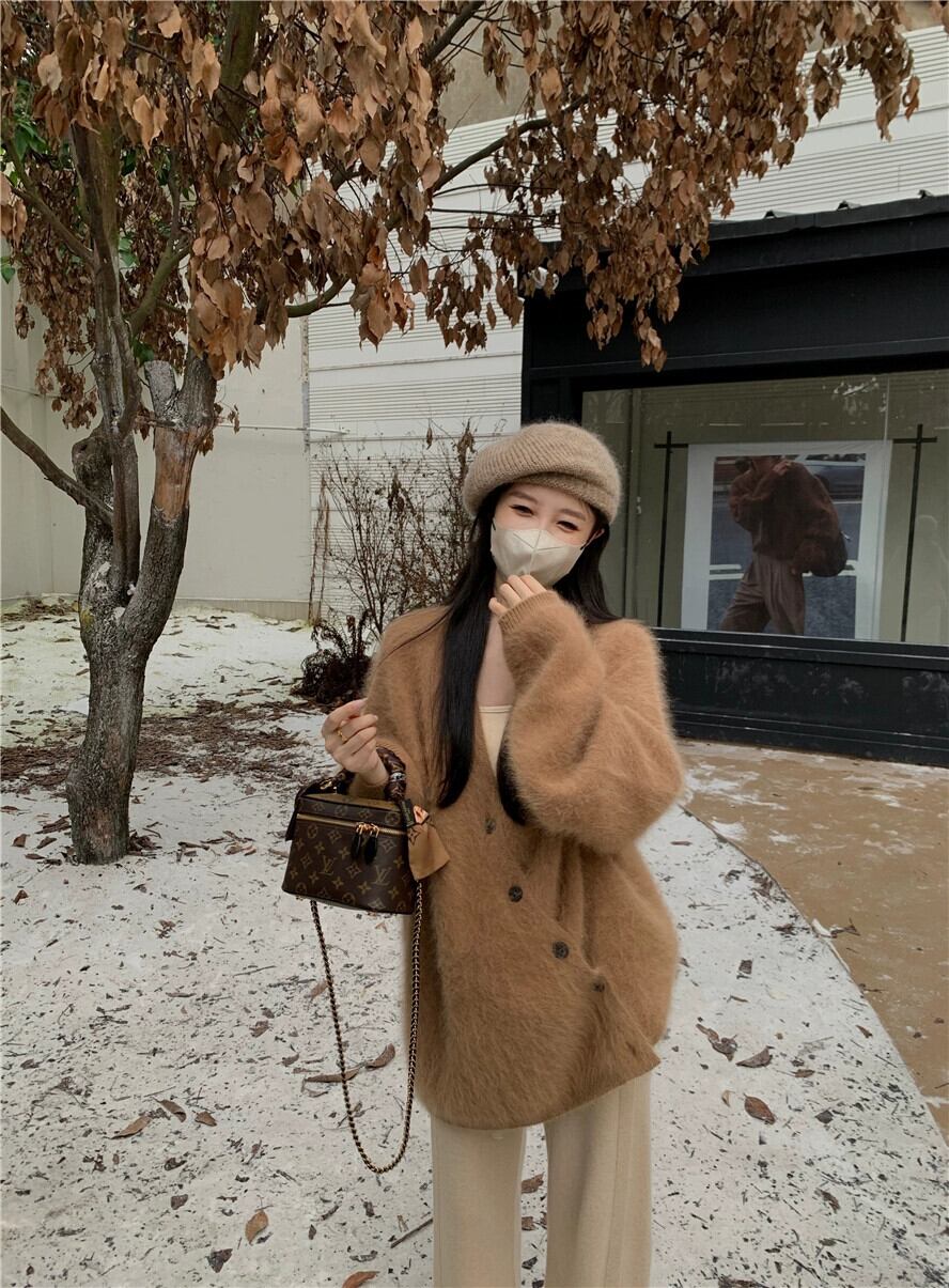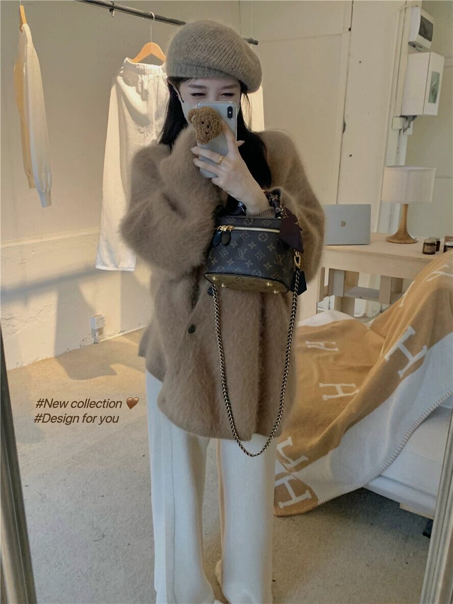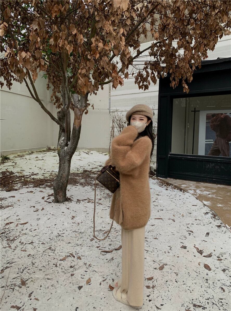 怠惰なスタイルのセータージャケット女性春と秋 2024 新しいぬいぐるみ肥厚ルーズミッドレングス長袖ニットカーディガン ロング スプリング 春物 オータム 秋物 missk53735382581