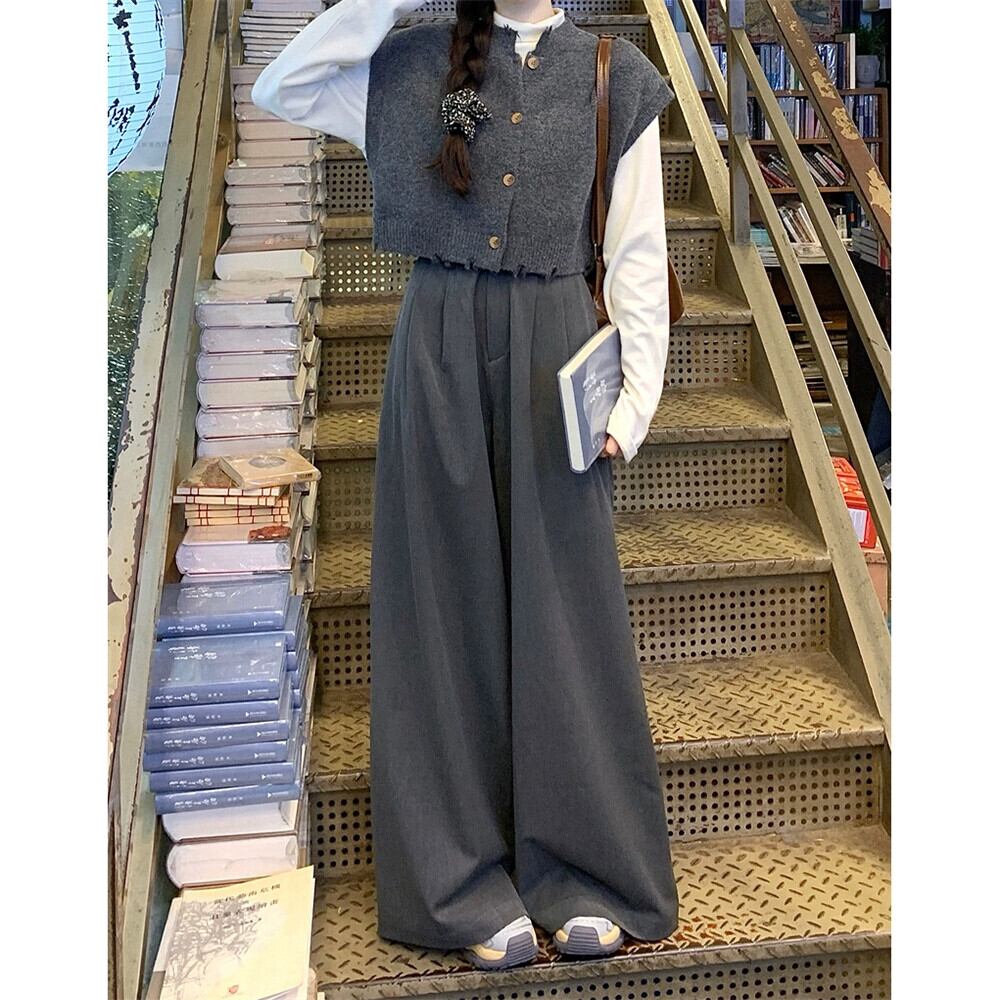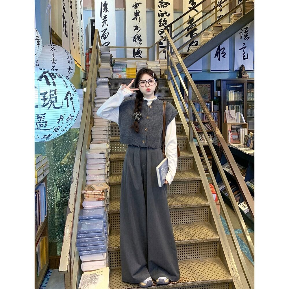 スタイルリッピング穴ニットベストボトミングシャツワイドレッグパンツ女性春と秋 2024 新しいファッション 3 点セット スプリング 春物 オータム 秋物 missk33318486511