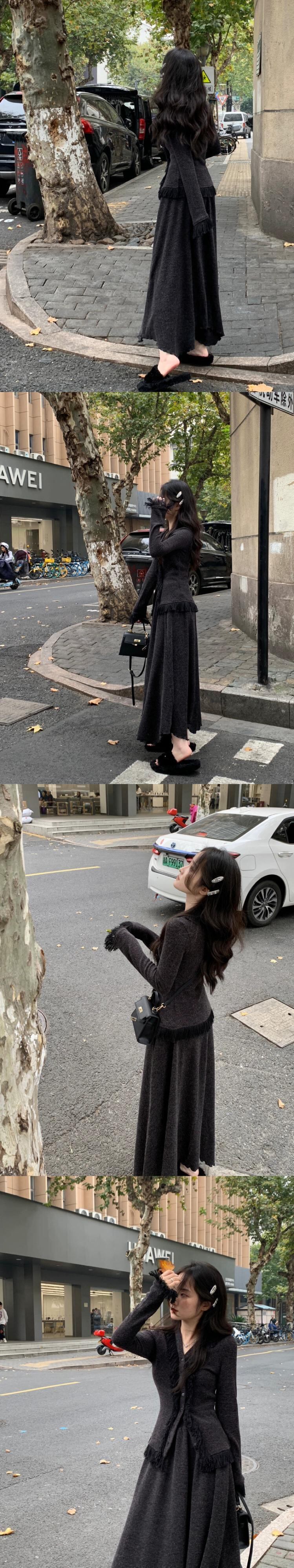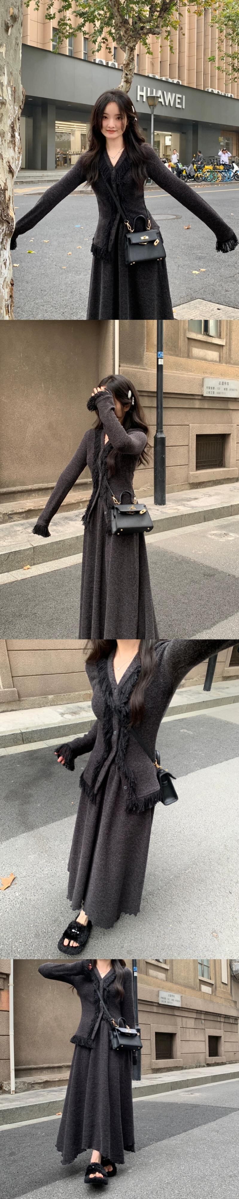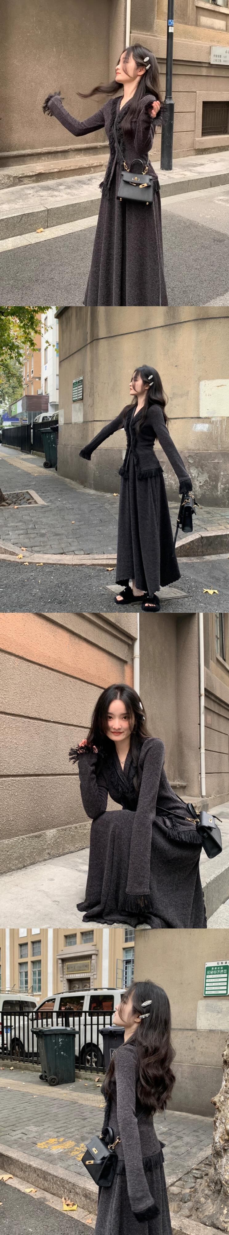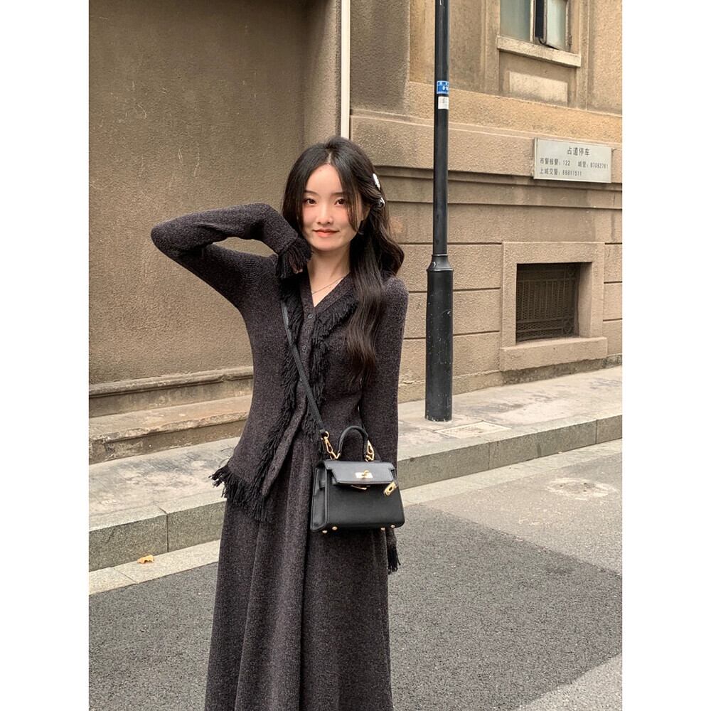 レトロテルデザインウエスト痩身長袖セーターハーフレングススカート女性春と秋 2024 新しいツーピースセット ロング スプリング 春物 オータム 秋物 missk47903476900