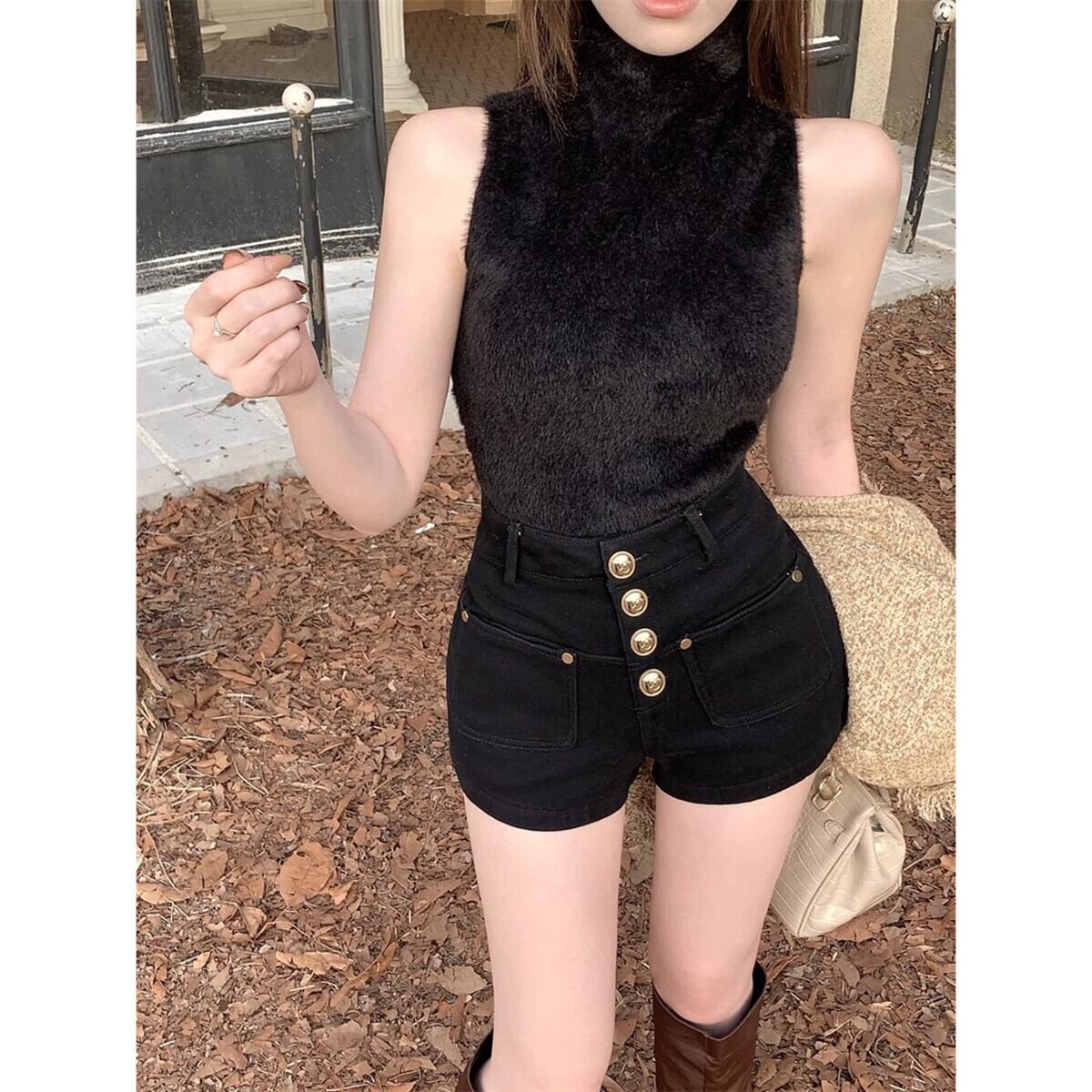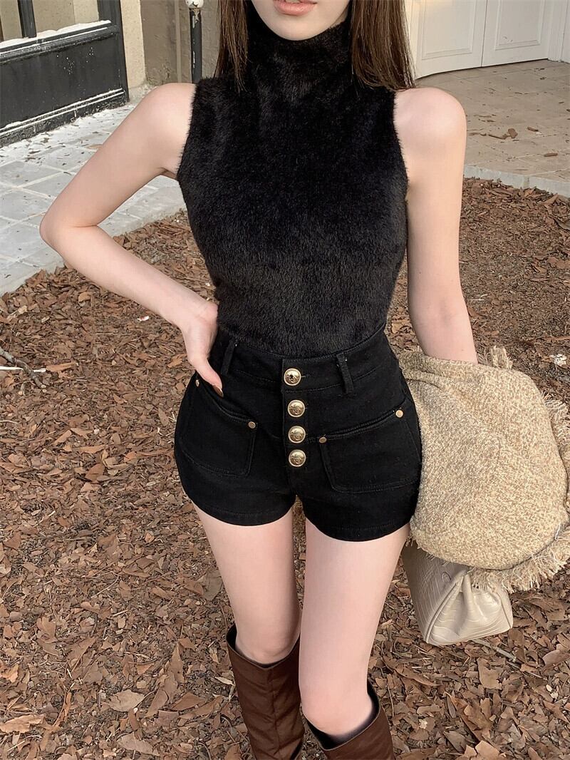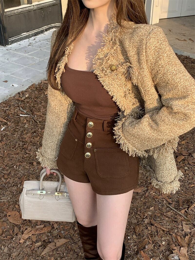 ベルベット肥厚ショーツ女性春と秋バージョン 2024 新しいスタイルのシングルブレストデザインのセクシーなカジュアルパンツと屋外で着用するパンツ スプリング 春物 オータム 秋物 ブルマー missk46367095720