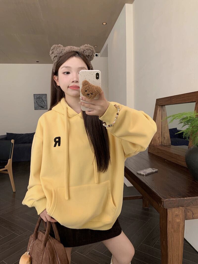 ベルベット肥厚フード付きスウェットシャツ女性春と秋 2024 新しいカレッジスタイルルーズミッドレングスデザイン長袖トップ ロング スプリング 春物 オータム 秋物 missk58585349997