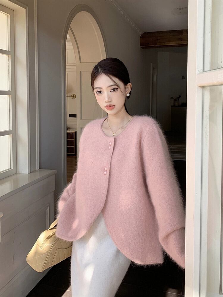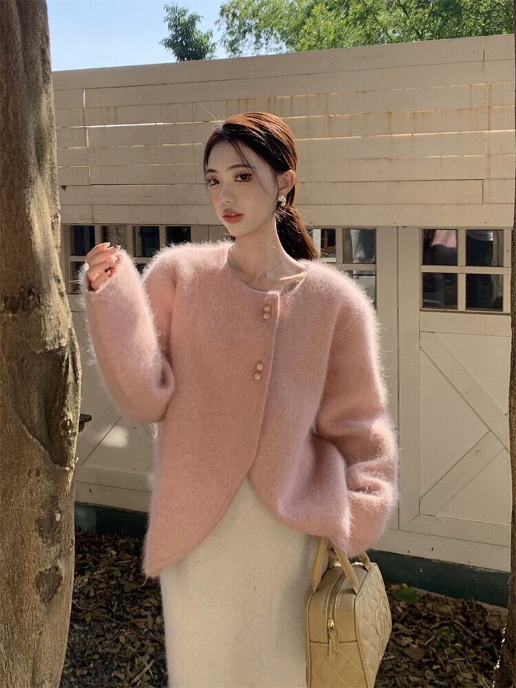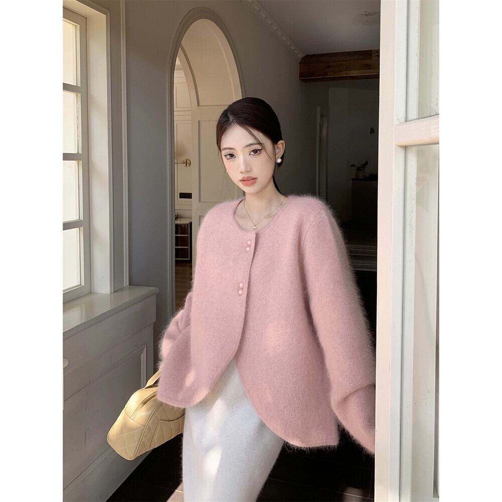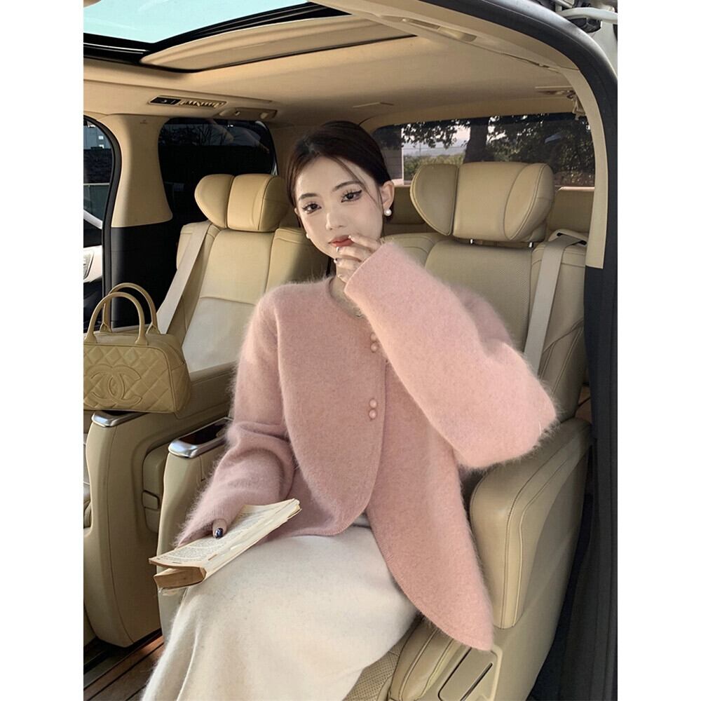 優しいスタイルのミンクベルベットのセータージャケット女性の 2024 年春の新しい不規則なデザインのピンクの長袖カーディガン ロング スプリング 春物 missk22533572076